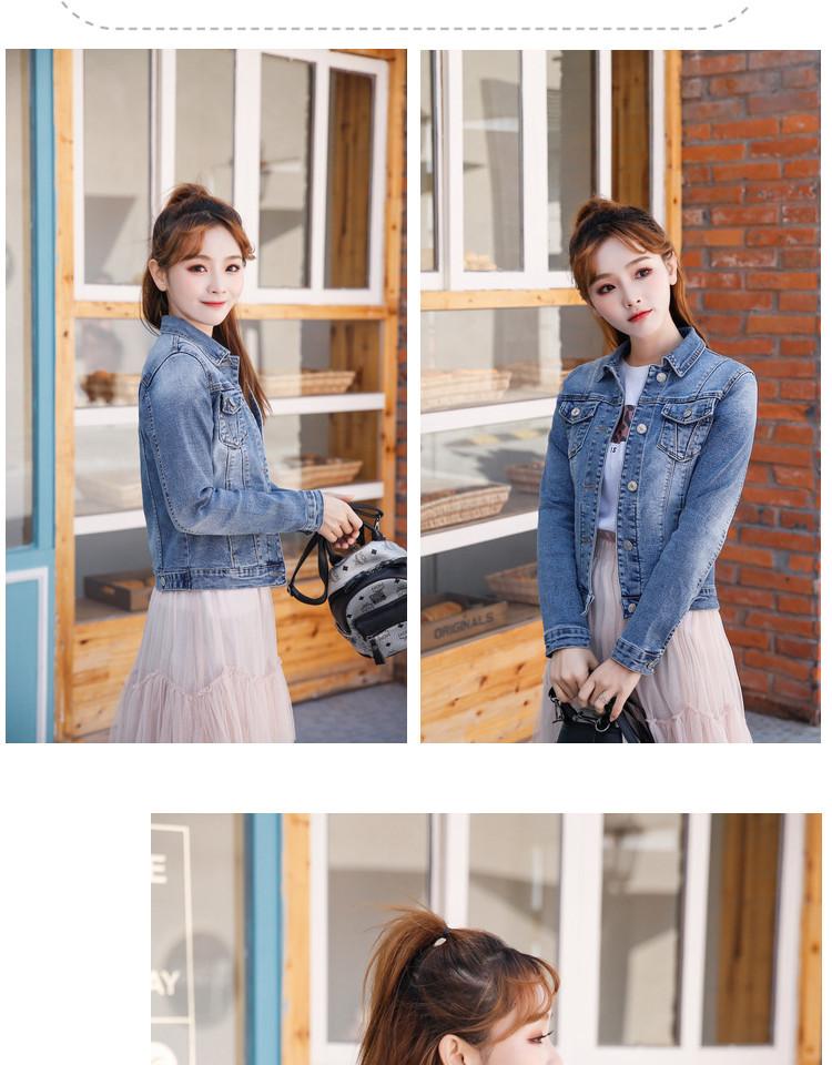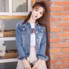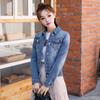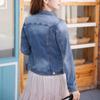 Jaqueta Jeans Stretch Estilo Coreano Estilo Coreano Estilo Coreano Feminina de Peito Único Azul Retrô de manga comprida Jaqueta Curta