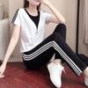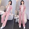 Verão 2025 Novo Estilo Capuz Manga Curta Calças Conjunto de Duas Peças Estudante Moda Solto Roupa Esportiva Terno Feminino Moderno