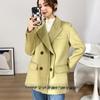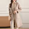 Casaco de Caxemira Dupla Face para Mulheres, Comprimento Médio Lã Slim-Fit Gola de Terno Roupa de Trabalho Jaqueta de Lã, Elegante Manga Longa para o Dia a Dia