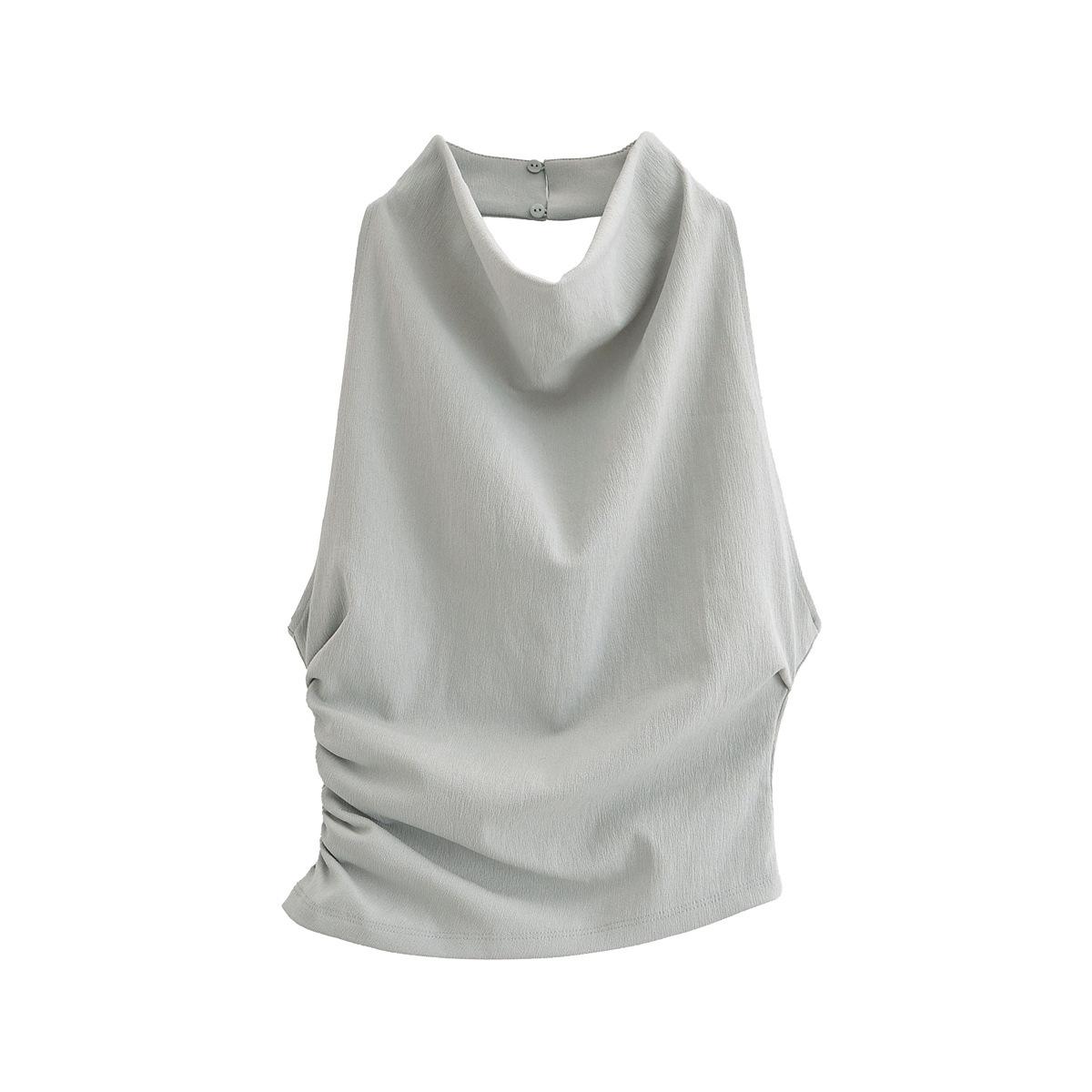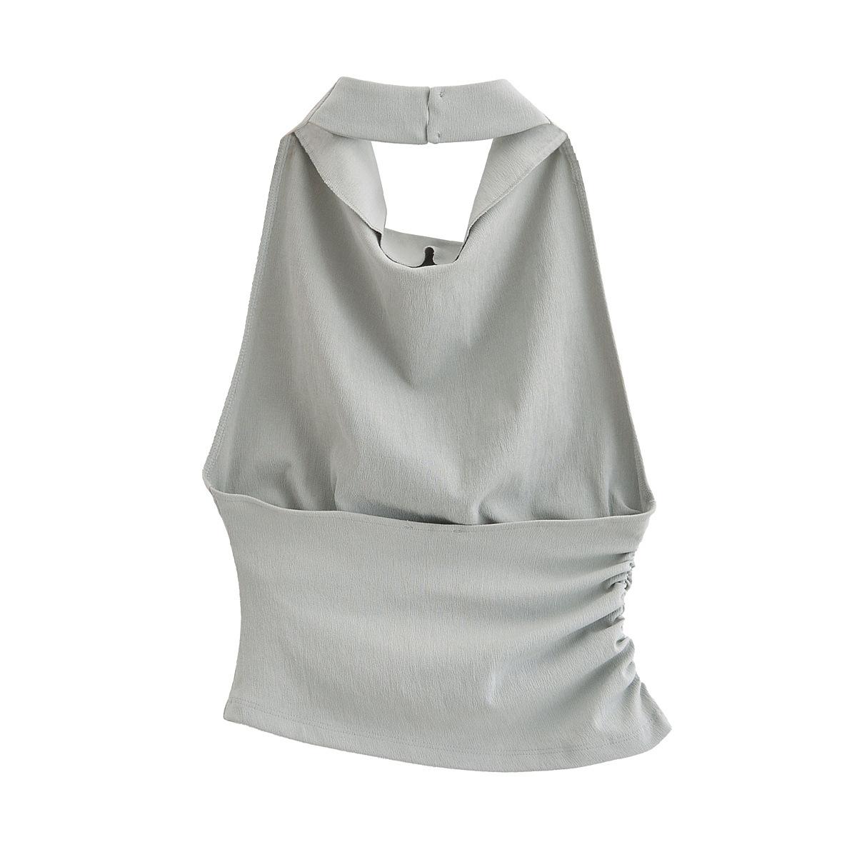 Cross-border Feminino 2024 Verão Europeu e Americano Pescoço Backless Slim-fit Mulheres Top Split Hip Saia Conjunto de Duas Peças E5