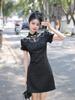 Cheongsam Preto 2024 Novo Verão Melhorado Jovem Menina Curto Bordado Novo Vestido Estilo Chinês