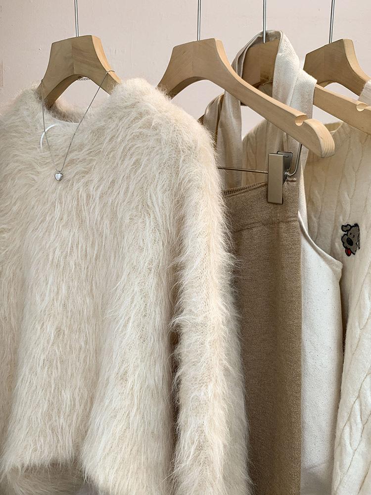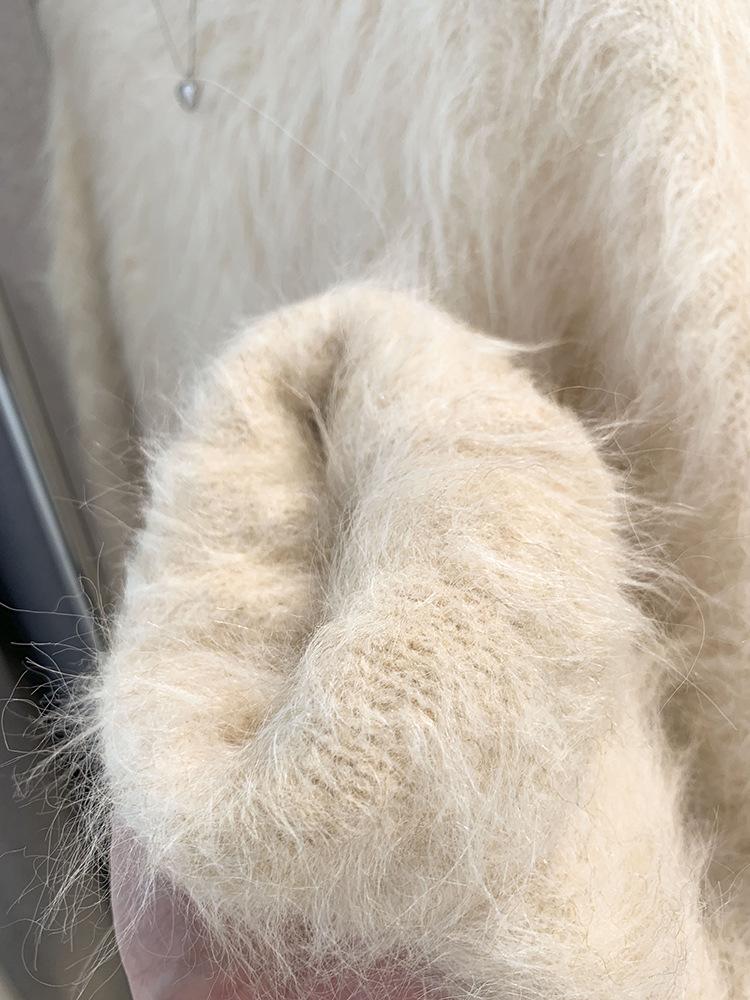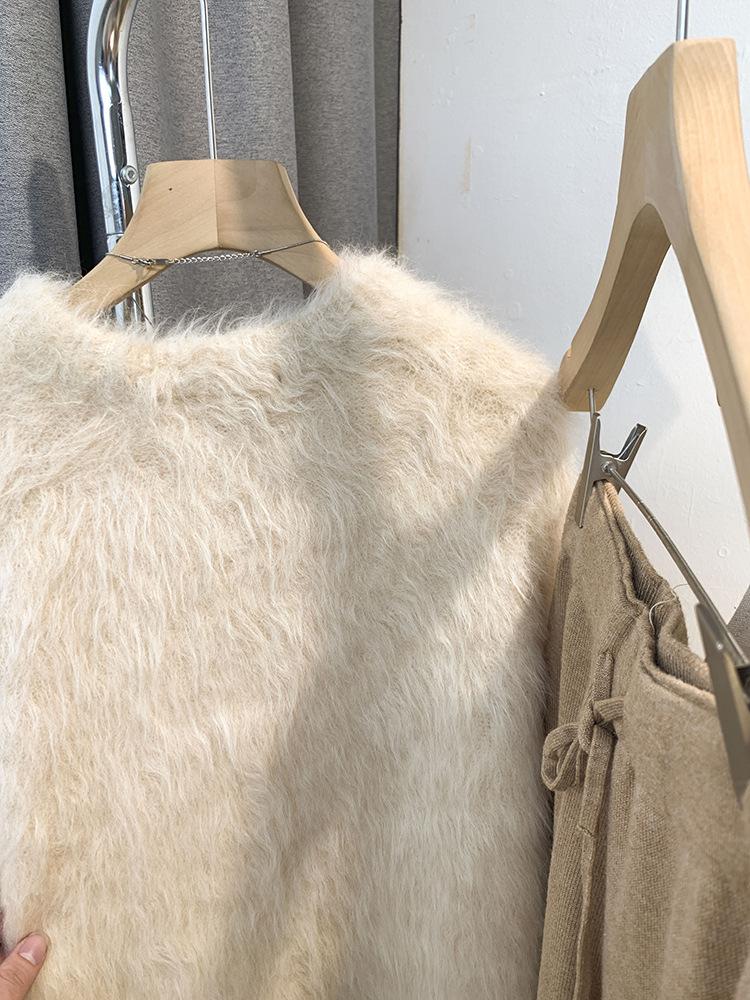 Suéter de lã de vison para mulheres outono e inverno, roupa externa estilo preguiçoso, design de nicho, suéter de malha mohair, top grosso de inverno