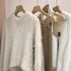 Pescoço redondo falso vison camisola de veludo mulheres outono e inverno exterior vestir preguiçoso estilo design sentido nicho mohair suéter top