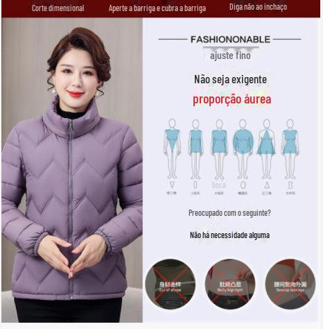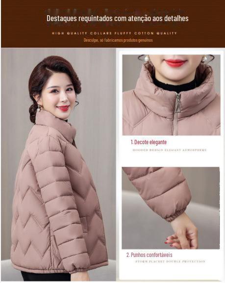 Mãe outono e inverno das mulheres casaco acolchoado de algodão casaco acolchoado de meia idade plus size emagrecimento pequeno jaqueta acolchoada de algodão curto 40 anos de idade 50 estilo ocidental