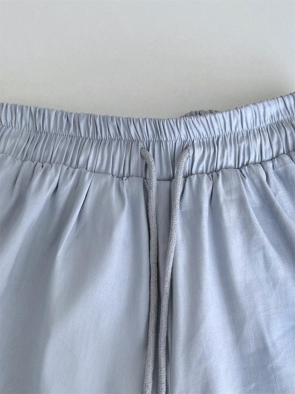 As calças têm design de cintura elástica e forro para evitar exposição.