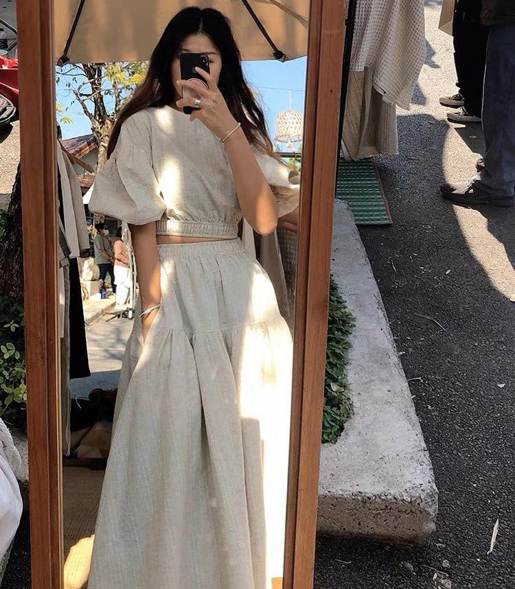 O conjunto todo de estilos é solto e slim, suave e tem uma atmosfera cotidiana.