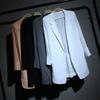 Draping elegante chiffon branco terno pequeno mulheres elegante de comprimento médio casual terno primavera e outono casaco fino solto