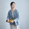 2025 Primavera e Outono Coreano Algodão Puro Sino de Vento Azul Linha Contraste Gola Redonda Jaqueta Cardigã T22-42