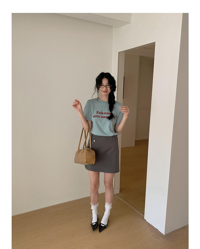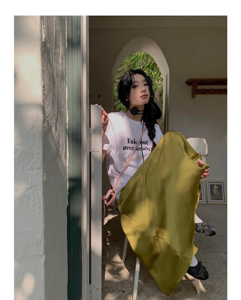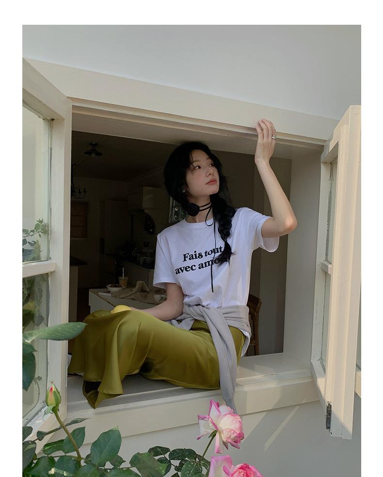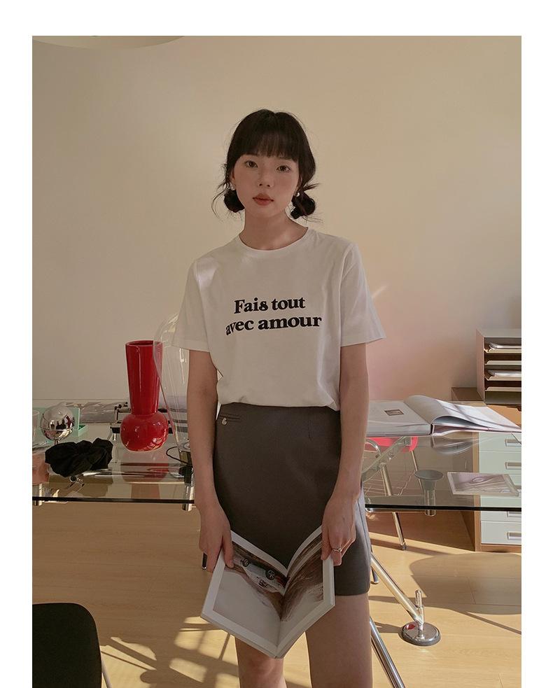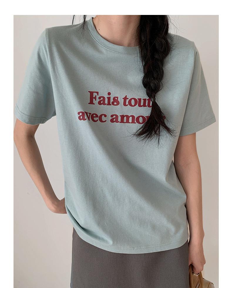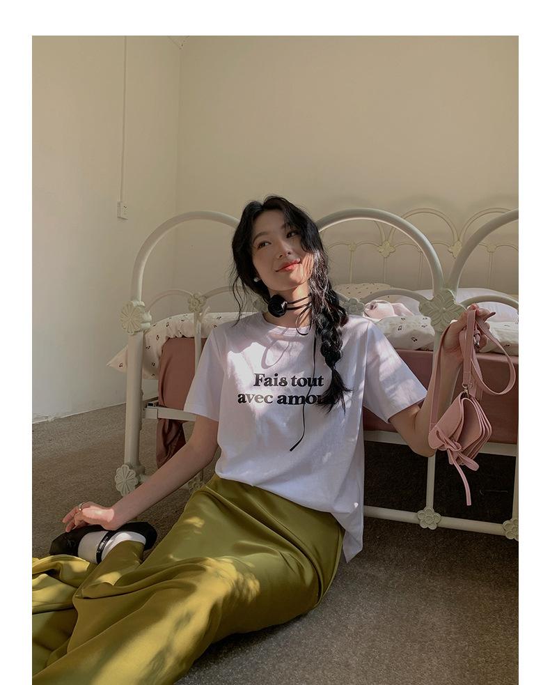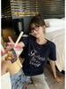 [Dez Mil Óleo de Ouro] Camiseta de Manga Curta Estampada com Letras Feminina 2025 Verão Nova Blusa para Usar por Baixo Y2236F