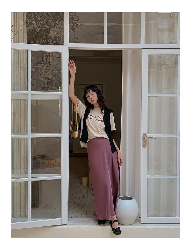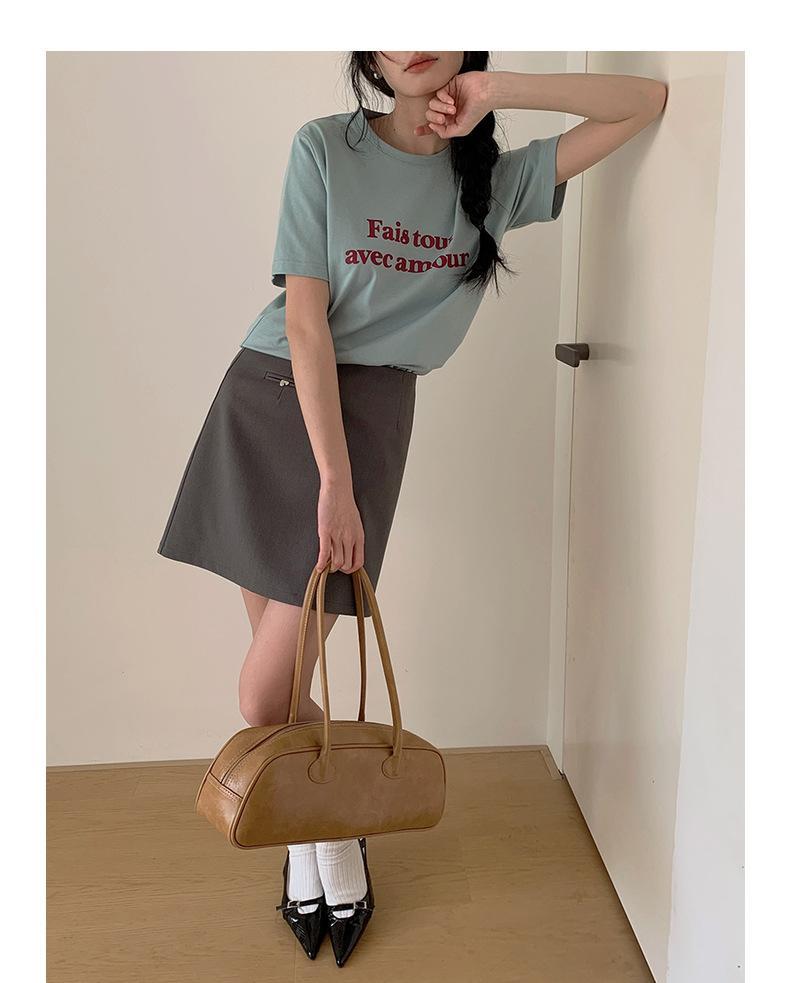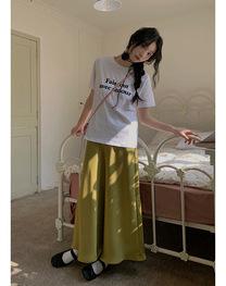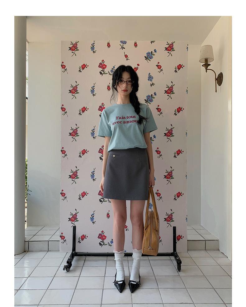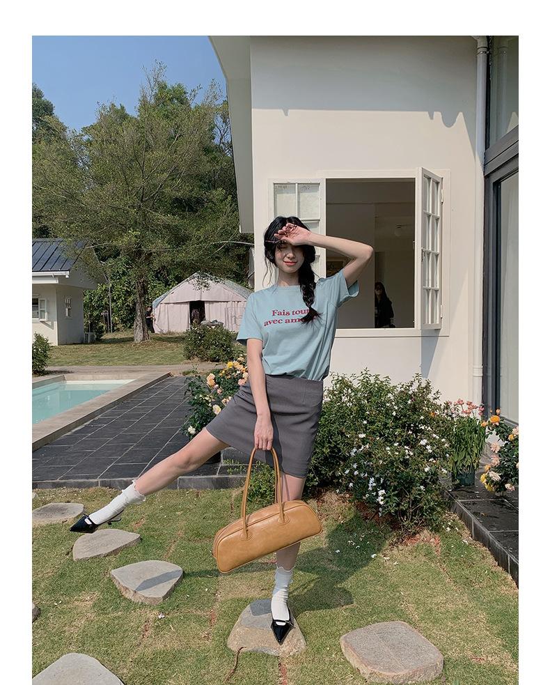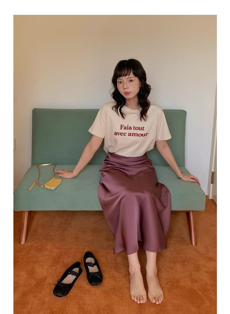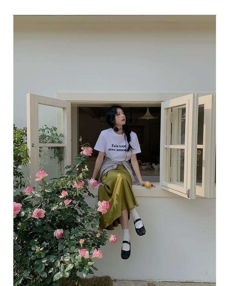 [Dez Mil Óleo de Ouro] Camiseta de Manga Curta Estampada com Letras Feminina 2025 Verão Nova Blusa para Usar por Baixo Y2236F