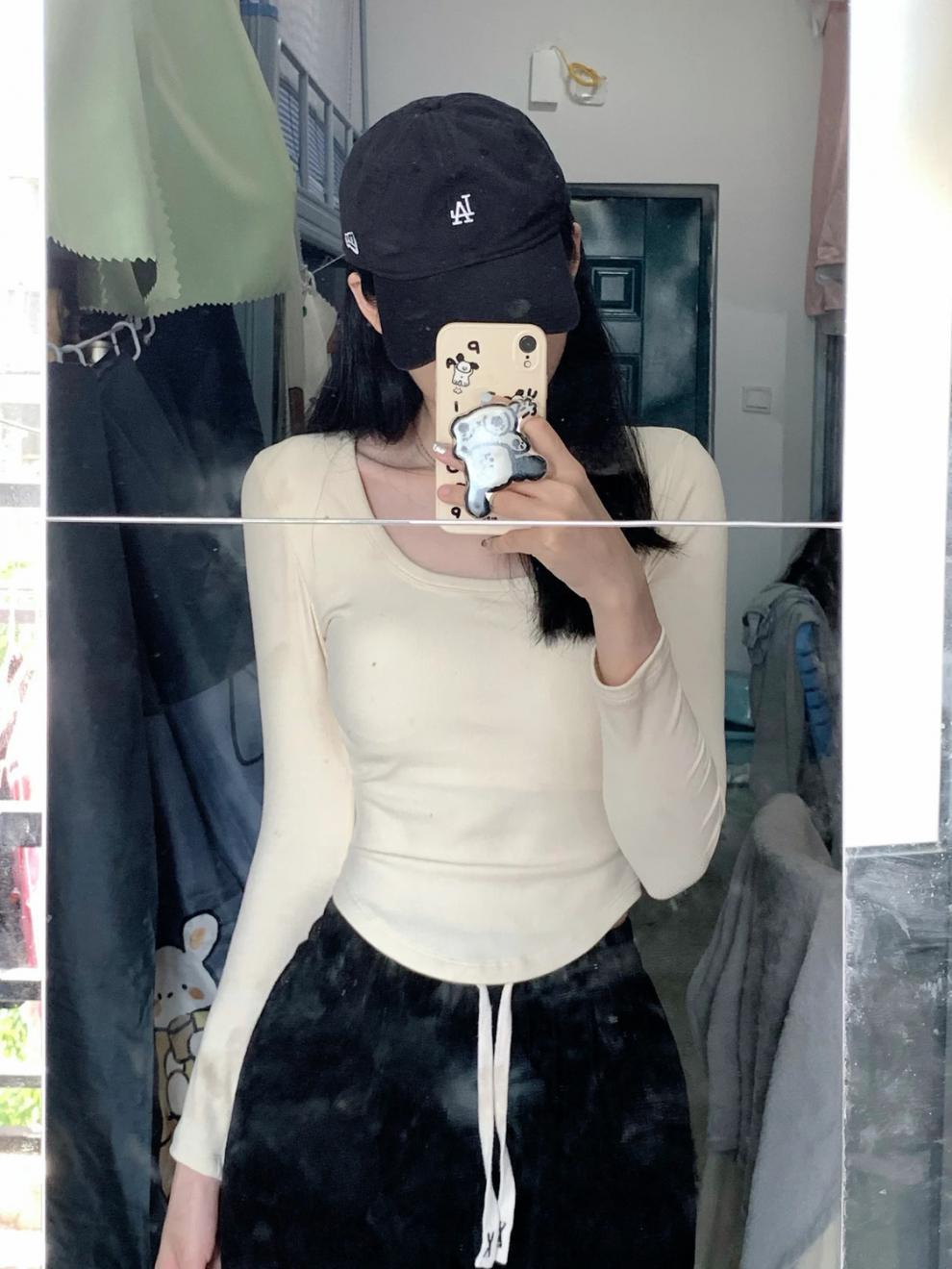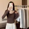 Design Gande Velvet Gola Quadrada Camiseta de Manga Longa Feminina Primavera Outono e Inverno Camisa de Base Interna para Nicho Spice Girls Top Slim-fit Slimming