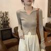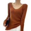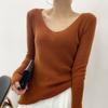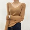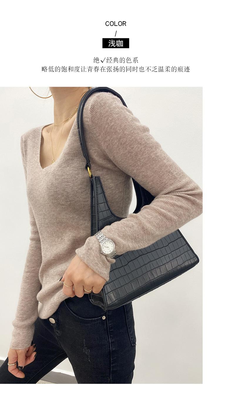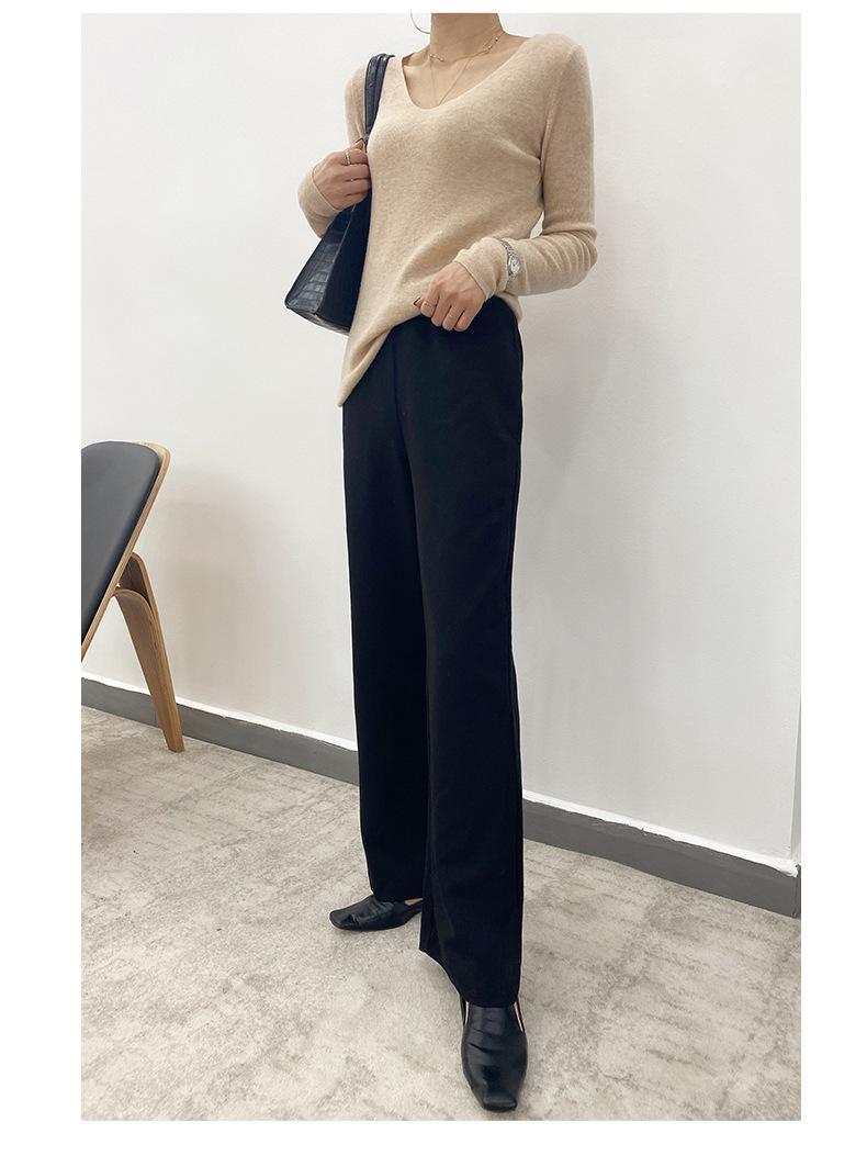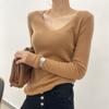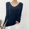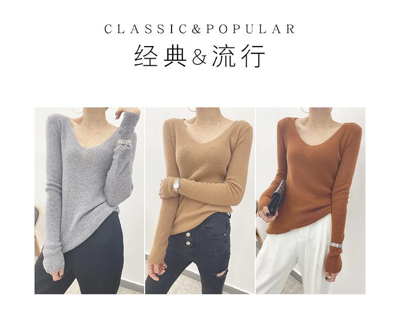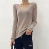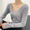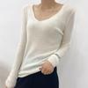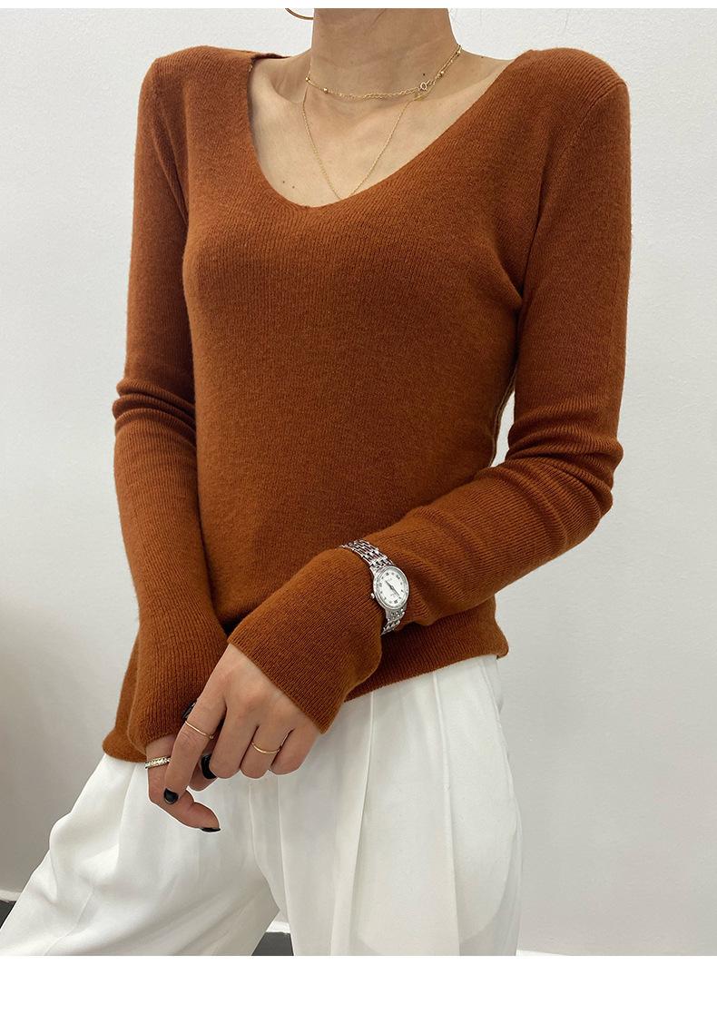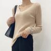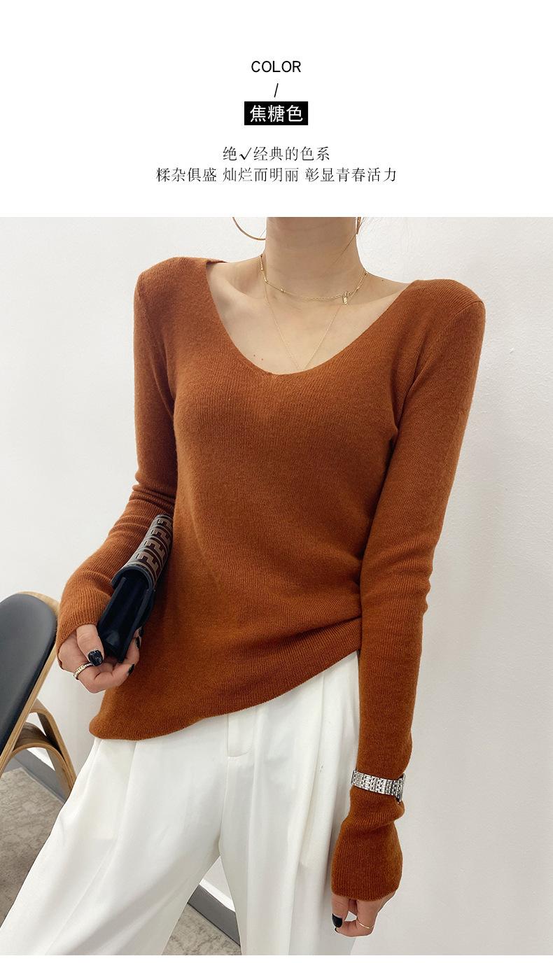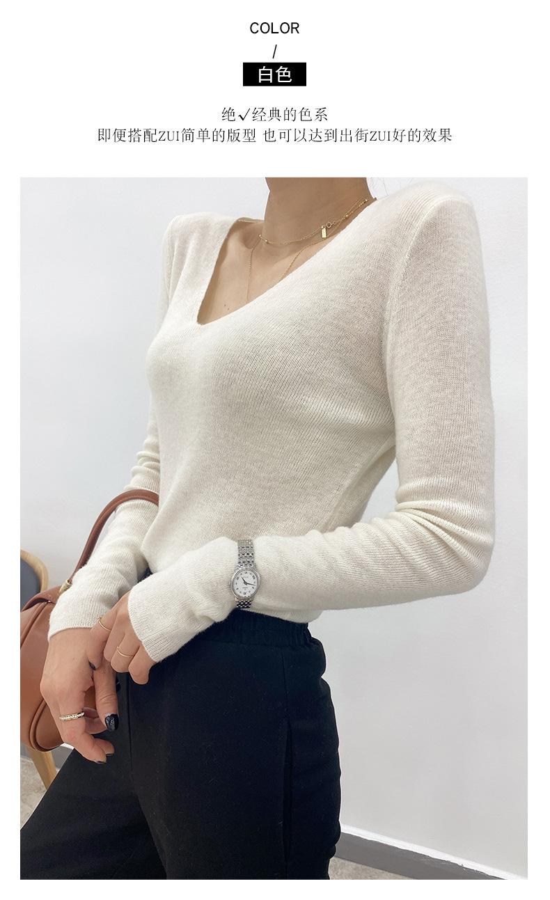 Suéter de Caxemira Novo Outono e Inverno 2025 Feminino Gola V Cor Sólida Ligeiramente Transparente Ajuste Slim Lã Suéter Base Tricotado Mais Fácil de Combinar