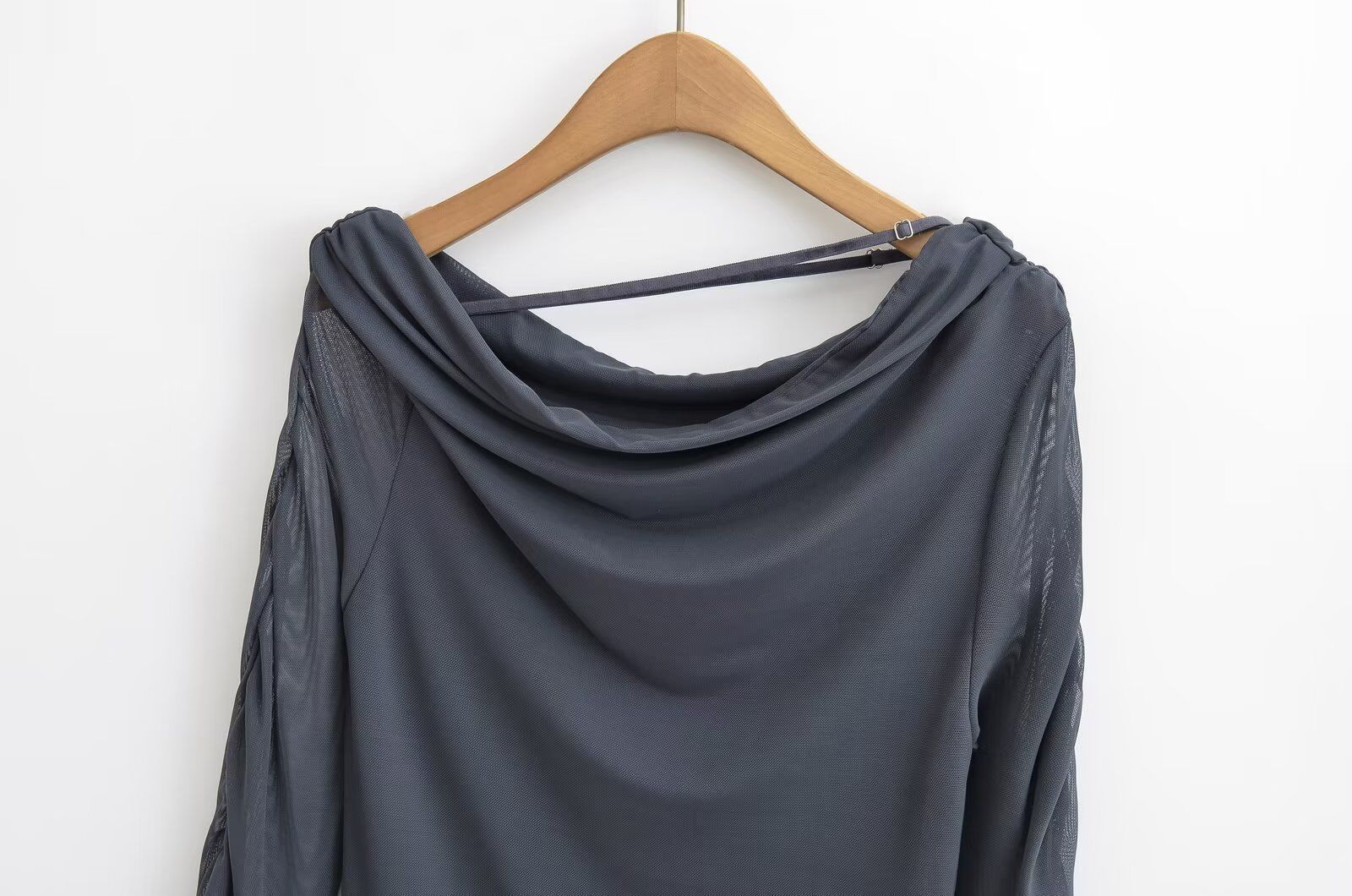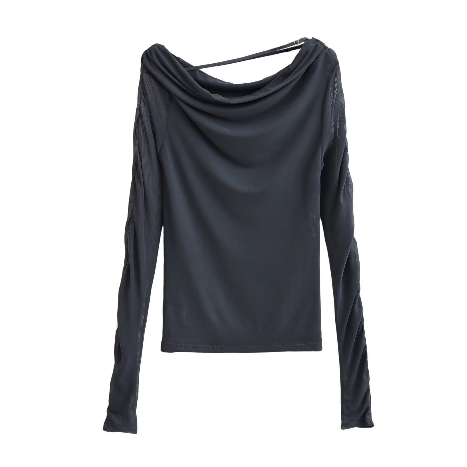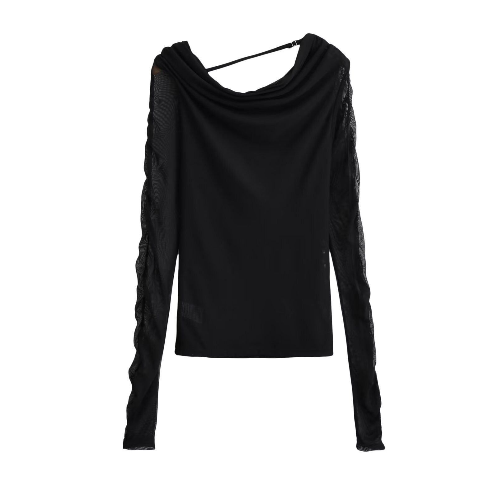 T-shirt de malha de manga comprida estilo europeu e americano off-shoulder para mulheres 2023 outono novo hot girl slim-fit slimming bottoming shirt top