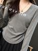 Outono 2025 Novo Estilo Versátil Emagrecedor Cintura Marcada Bainha Curva Decote V Manga Longa Camiseta Básica Top para Mulheres