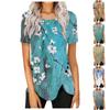 Camiseta feminina transfronteiriça europeia e americana primavera 2023, nova moda retrô com botões, estampa degradê, gola redonda, manga curta