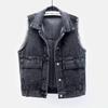 Colete jeans branco feminino curto primavera verão outono inverno simples bolso grande sem mangas colete all-match solto top cardigan