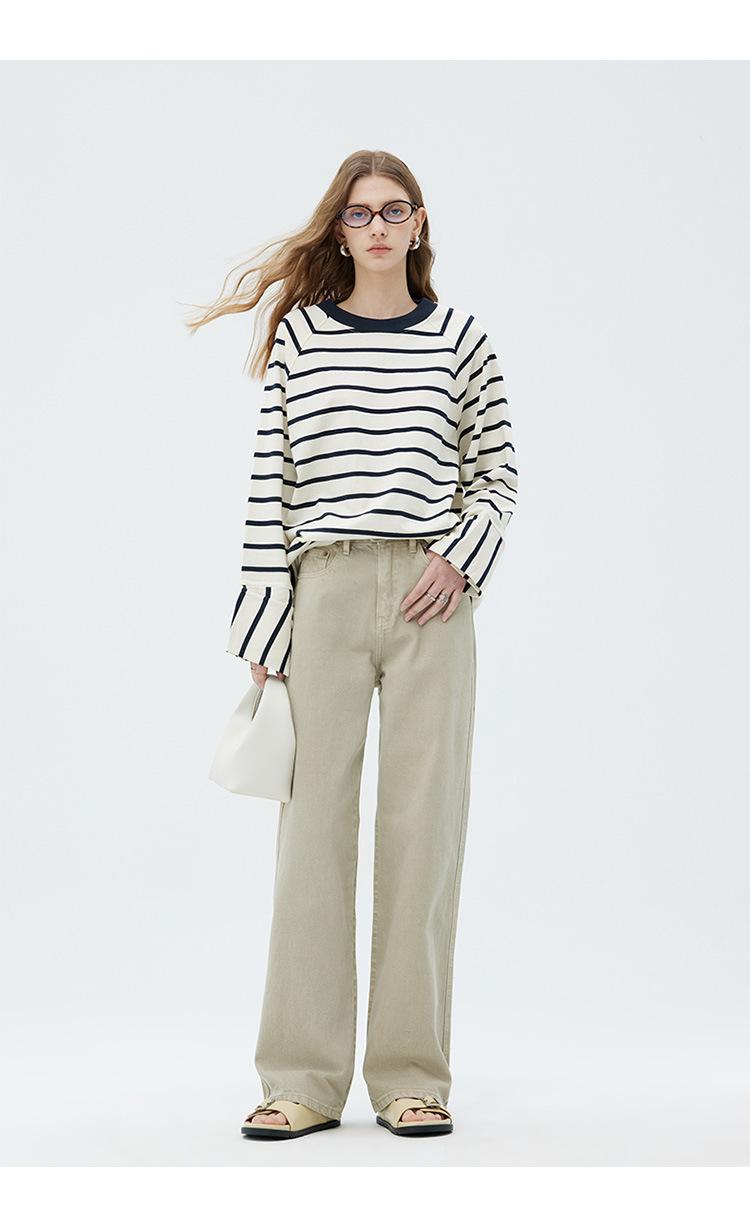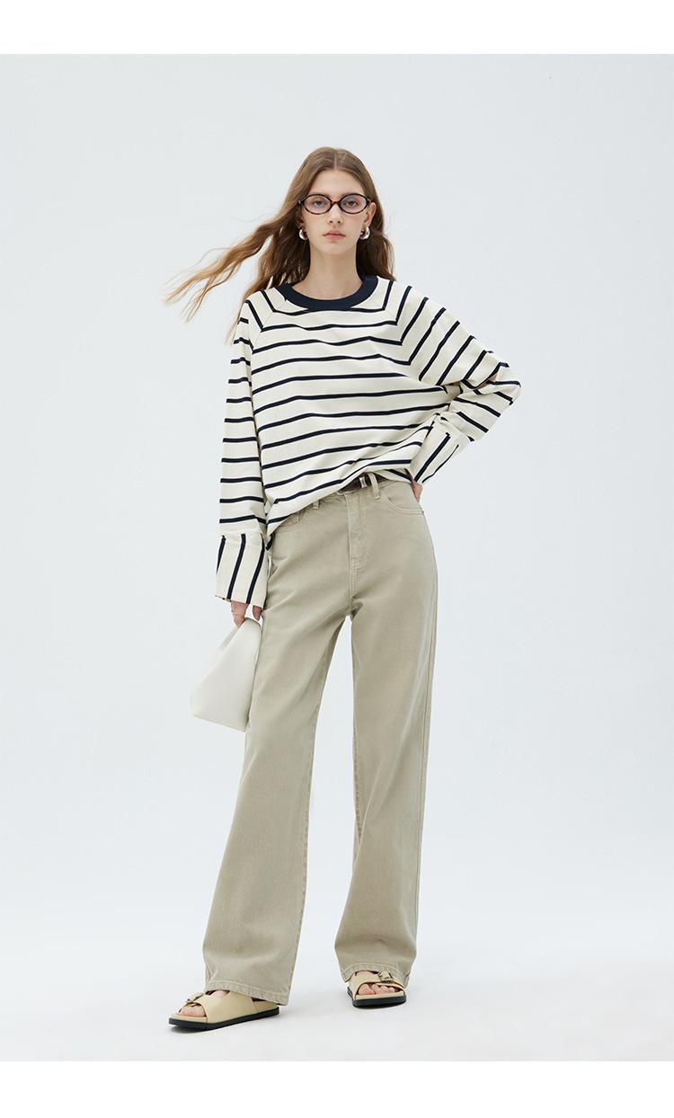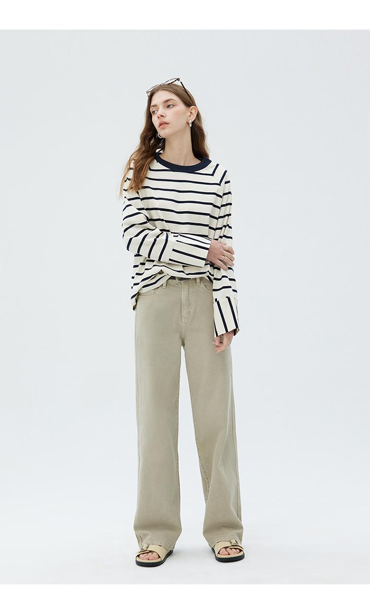 Alta Qualidade 2024 High End Nova Cor Damasco Wide Leg Calças Loose Straight Stretch Mulheres Jeans