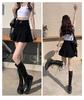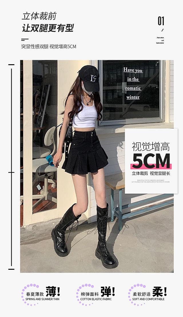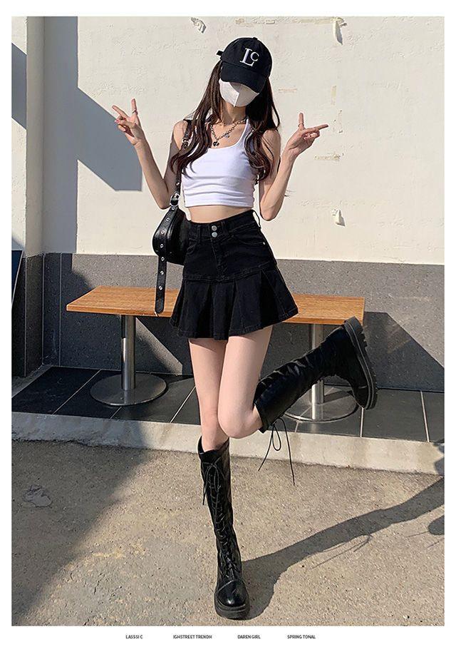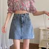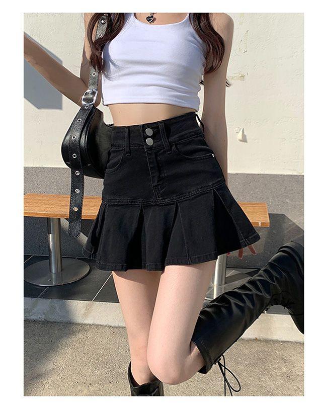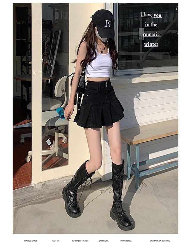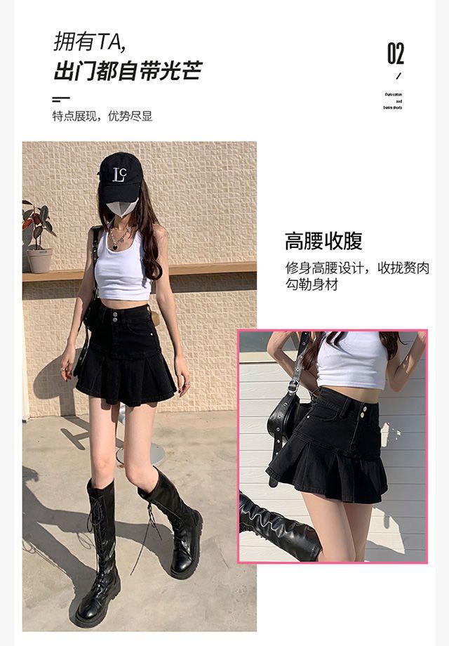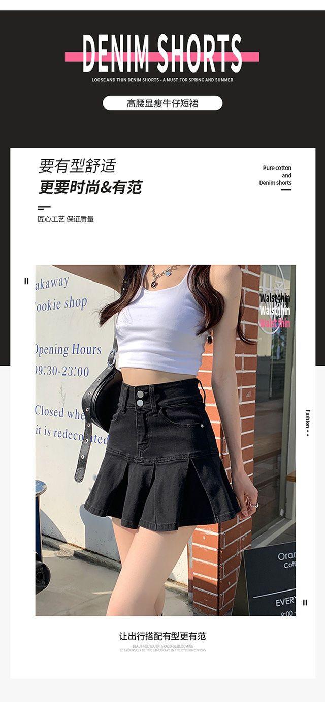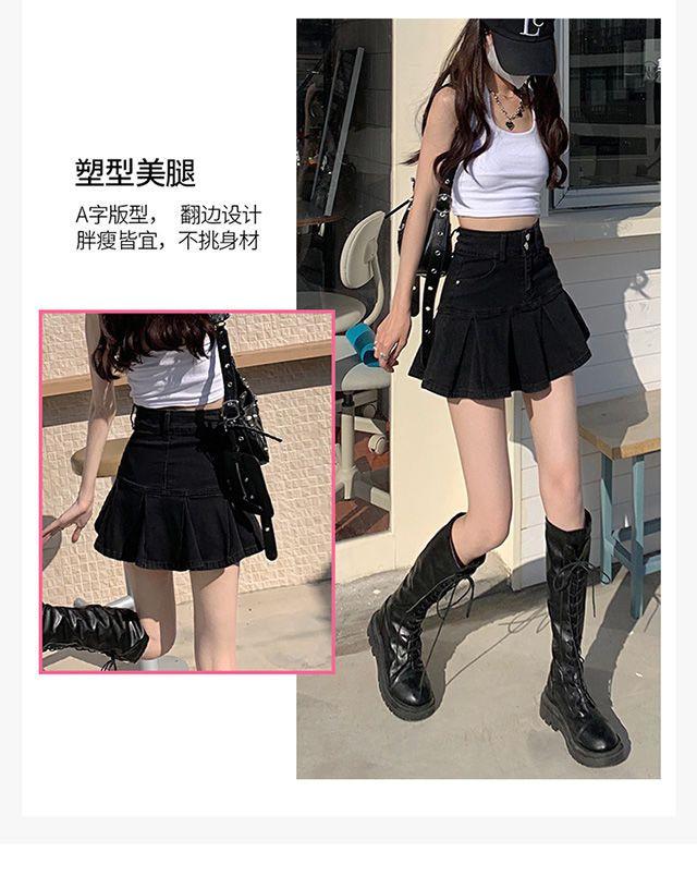 Saia jeans feminina Saia plissada pequena primavera e verão 2023 Nova cintura alta emagrecendo All-match Saia curta linha A