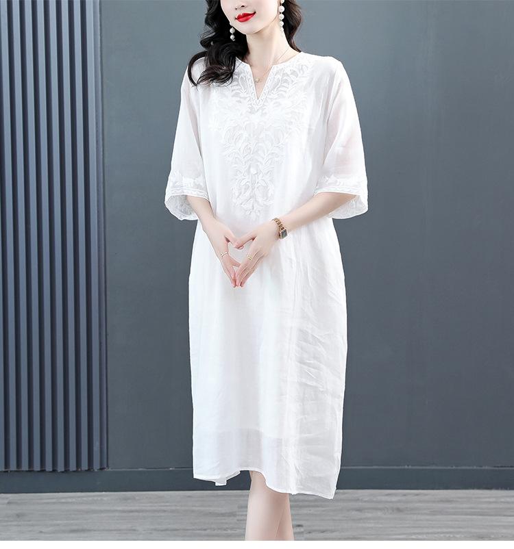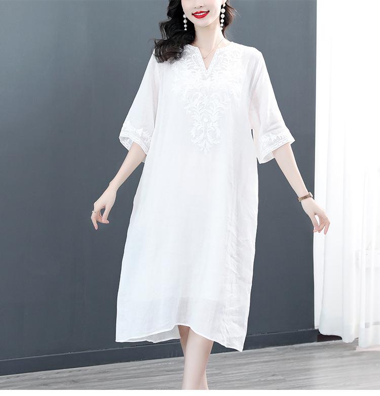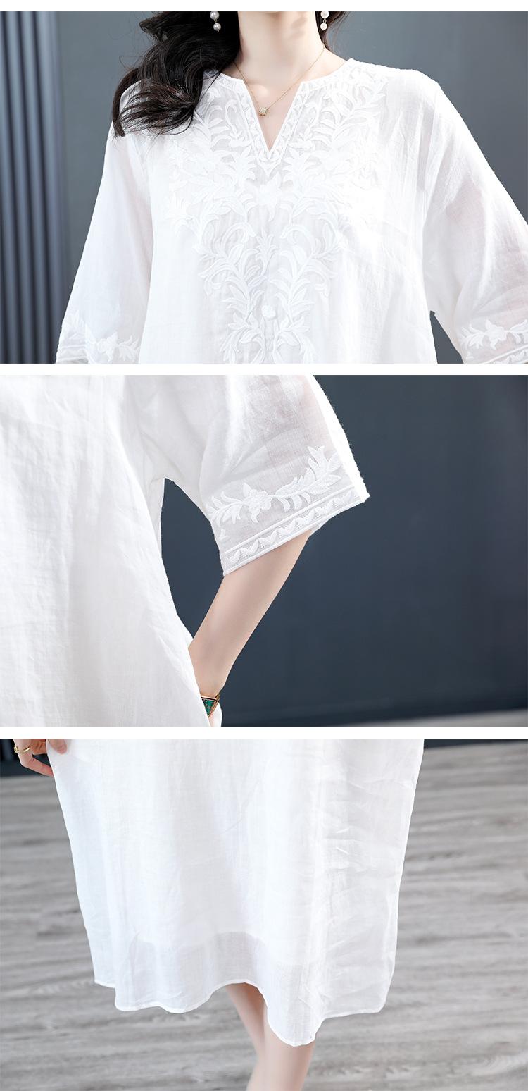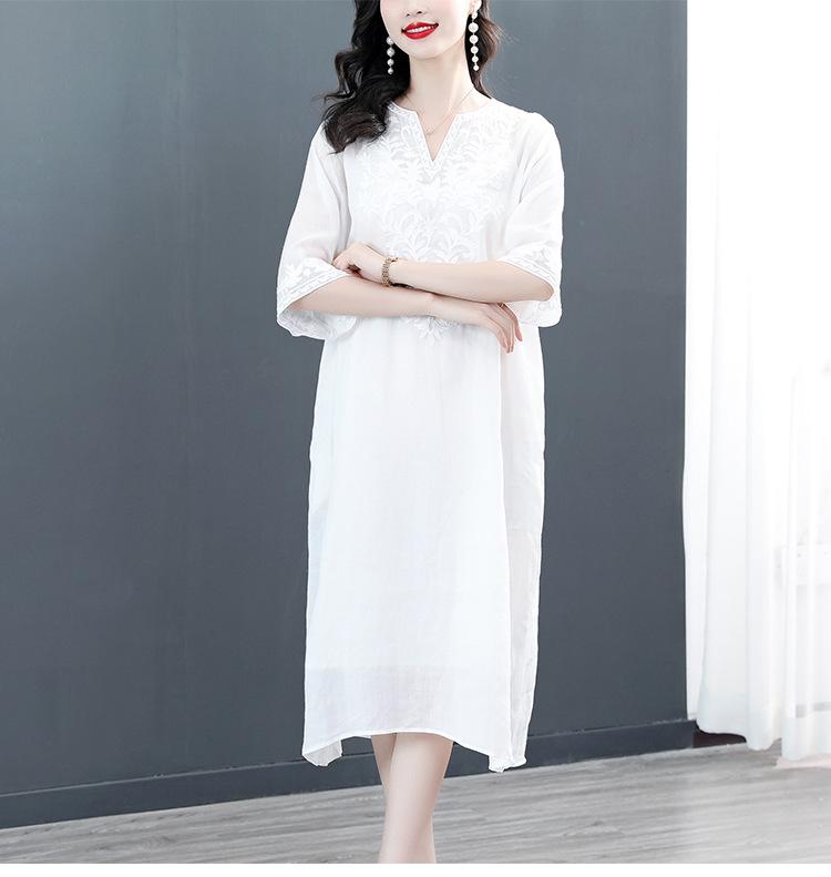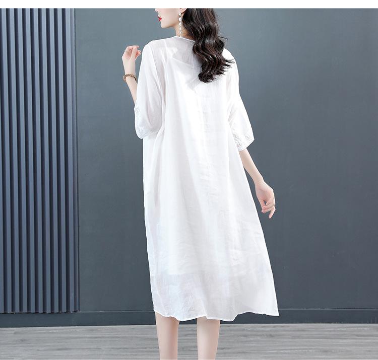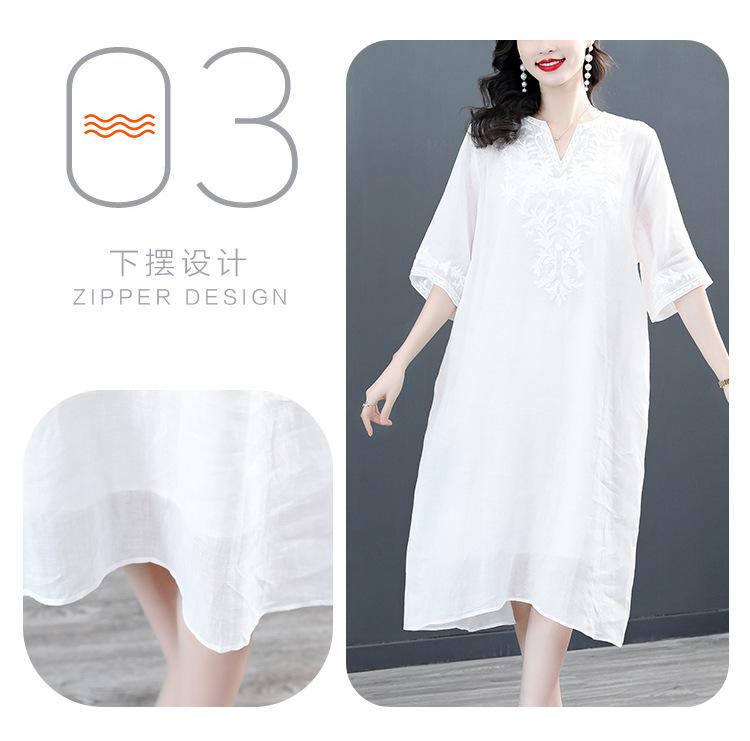 Vestido de Linho Branco Bordado Férias à Beira-Mar 2023 Verão Nova Moda Elegante Vestuário Vestido de Alta Qualidade