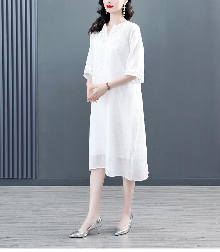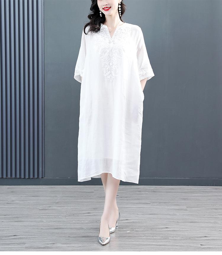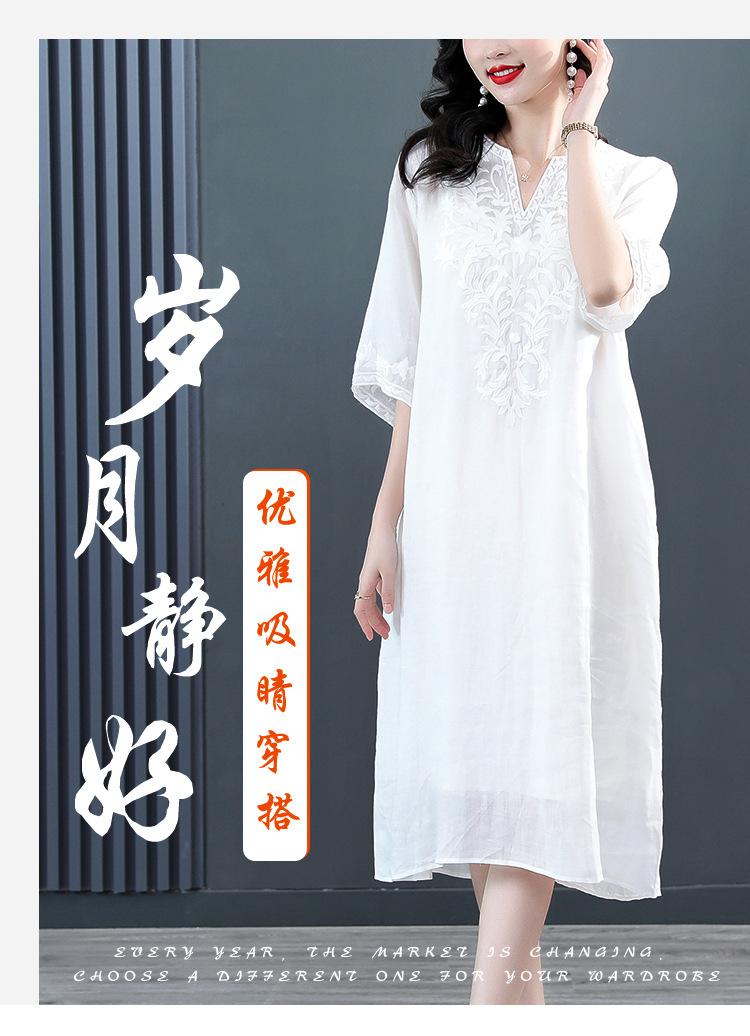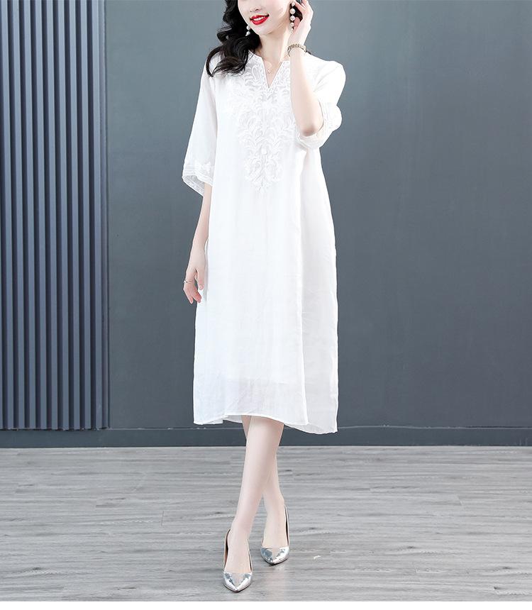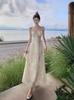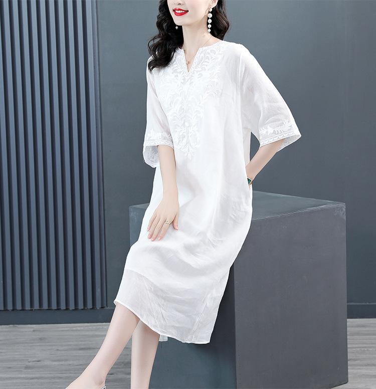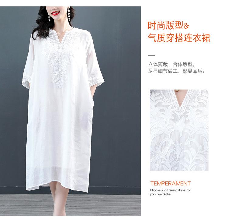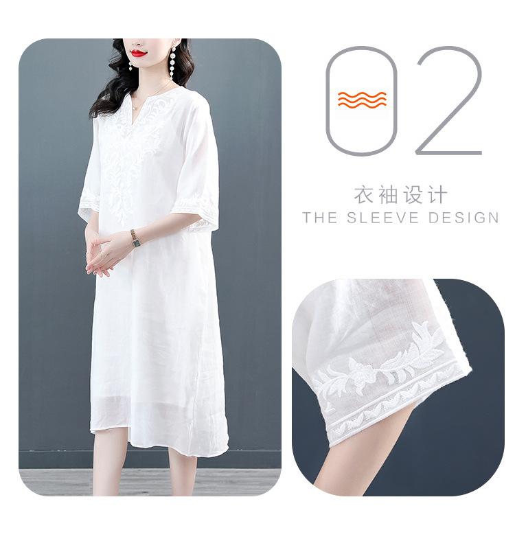 Vestido de Linho Branco Bordado Férias à Beira-Mar 2023 Verão Nova Moda Elegante Vestuário Vestido de Alta Qualidade