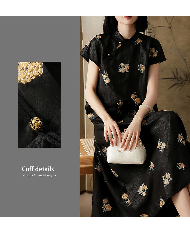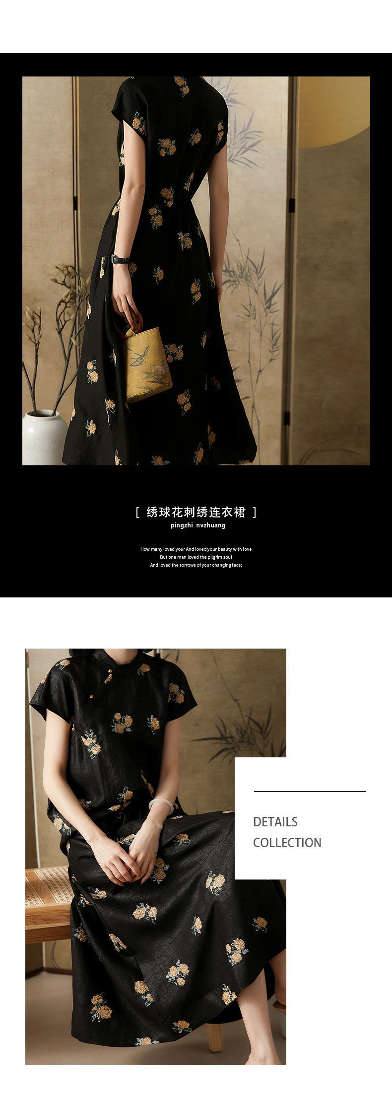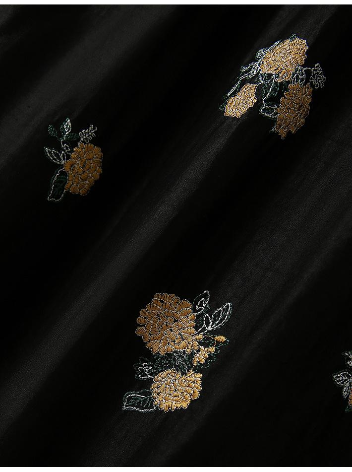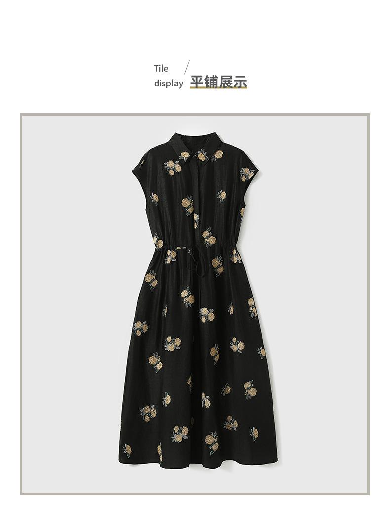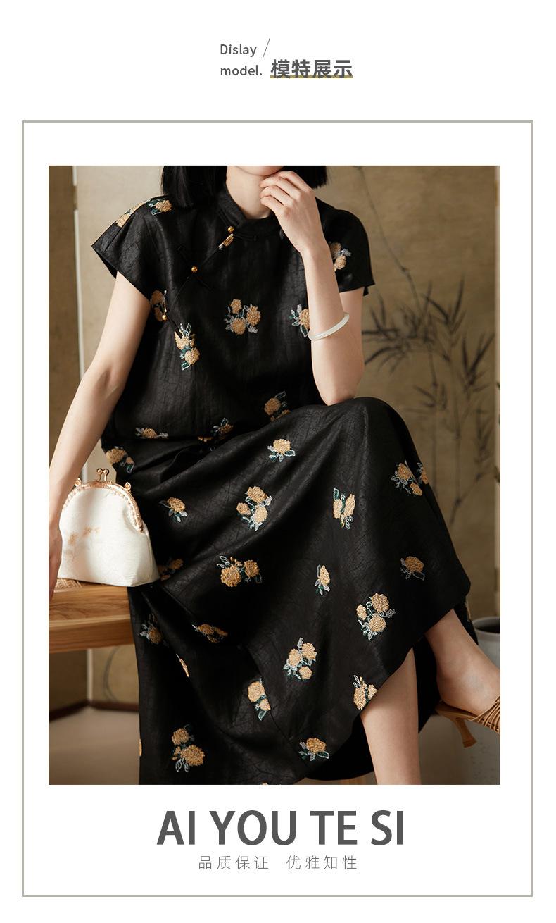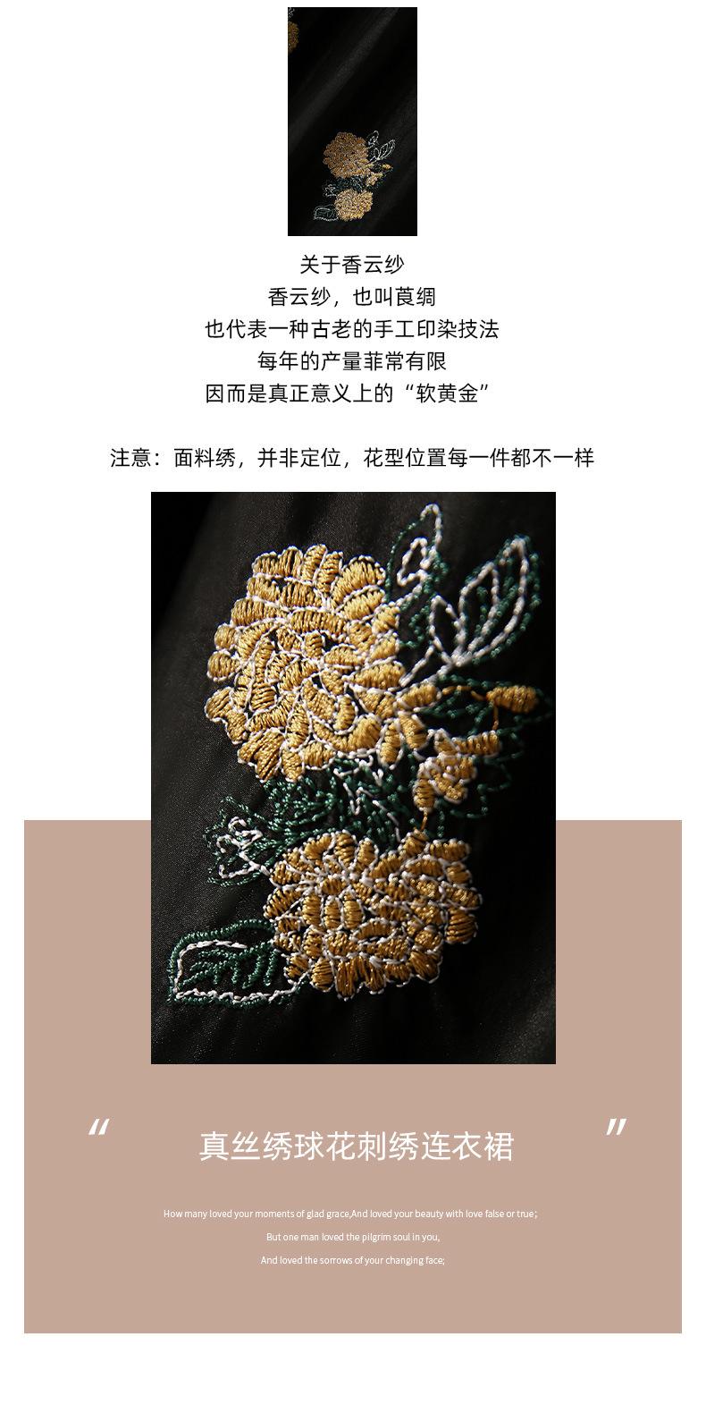 Full Silk Hydrangea bordado Xiangyun vestido fio Mulberry Silk saia Mid-length Small Black Dress Verão das Mulheres