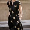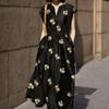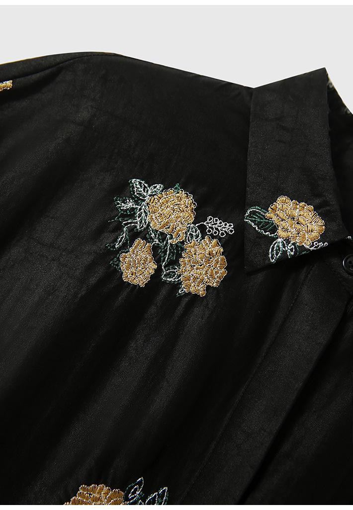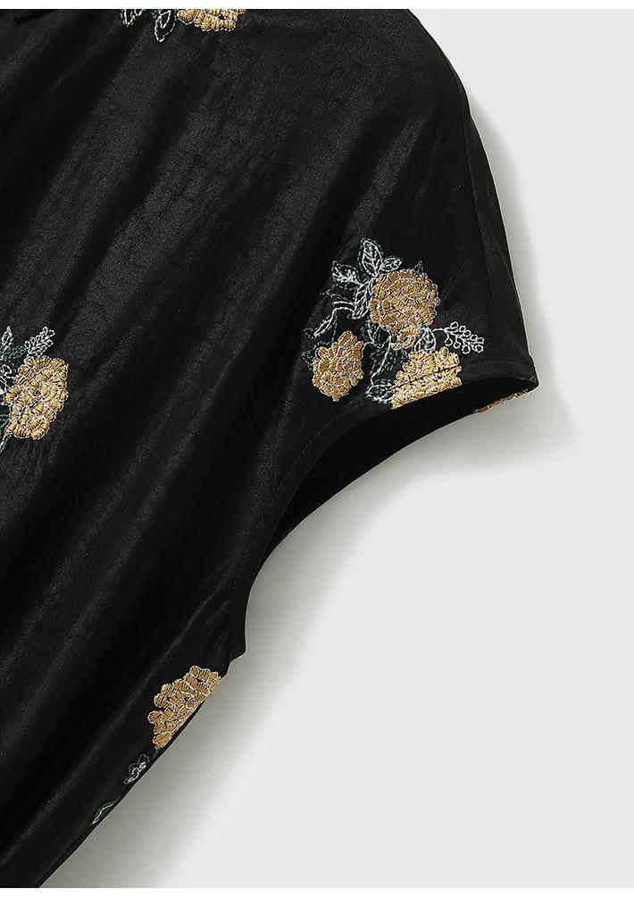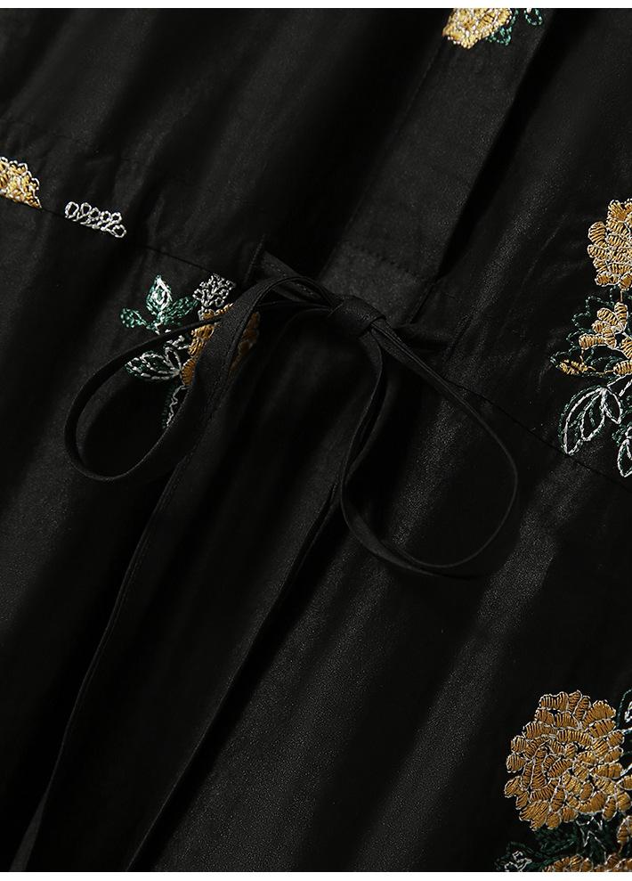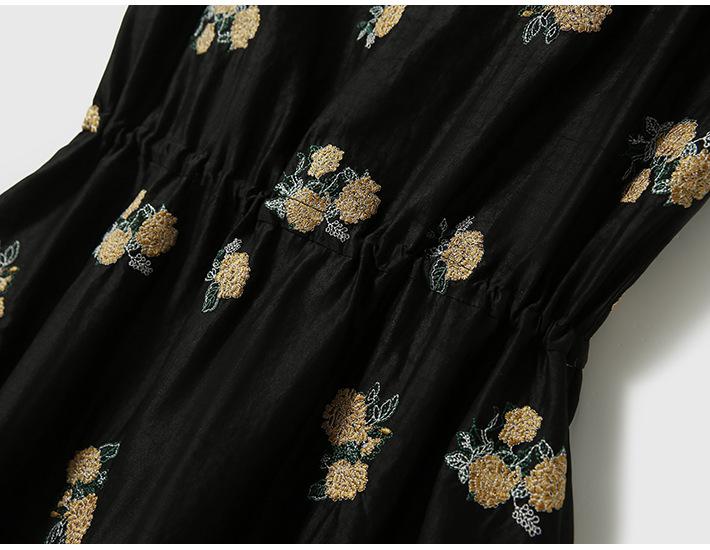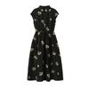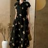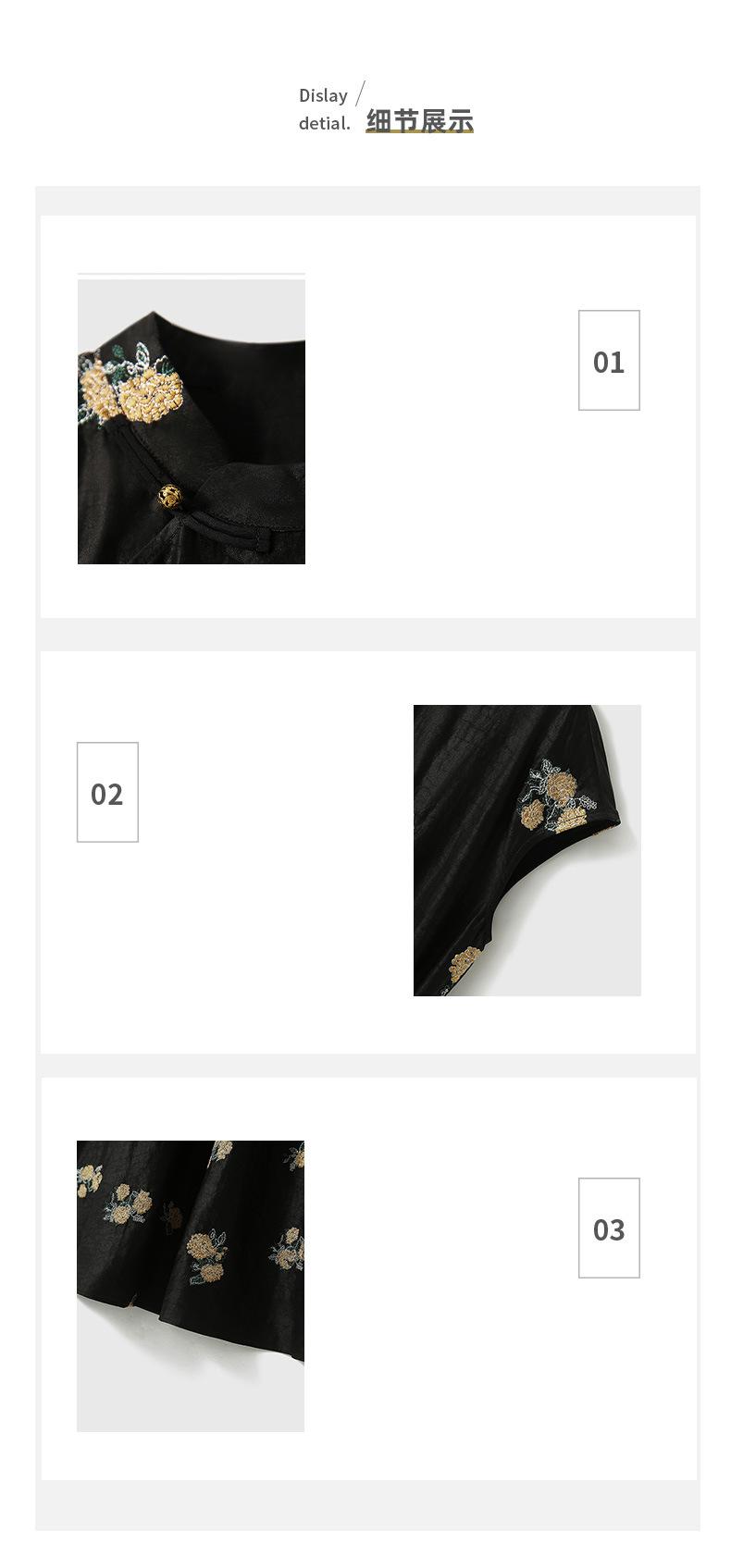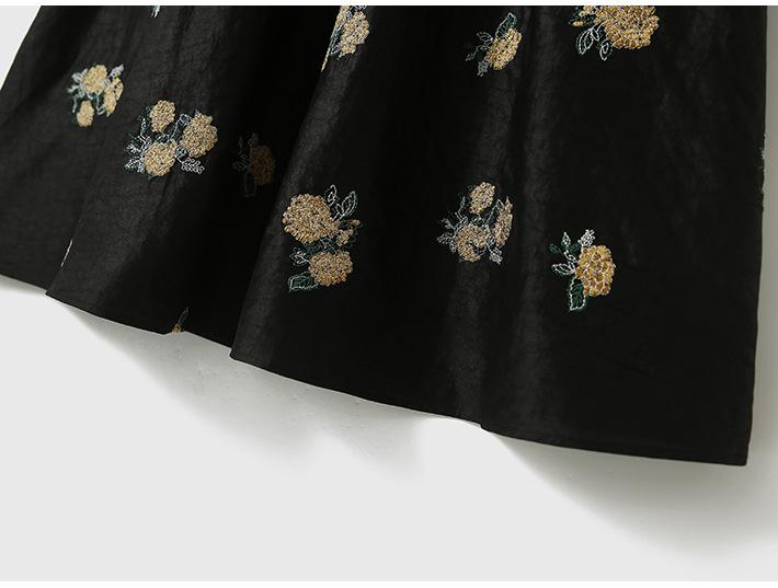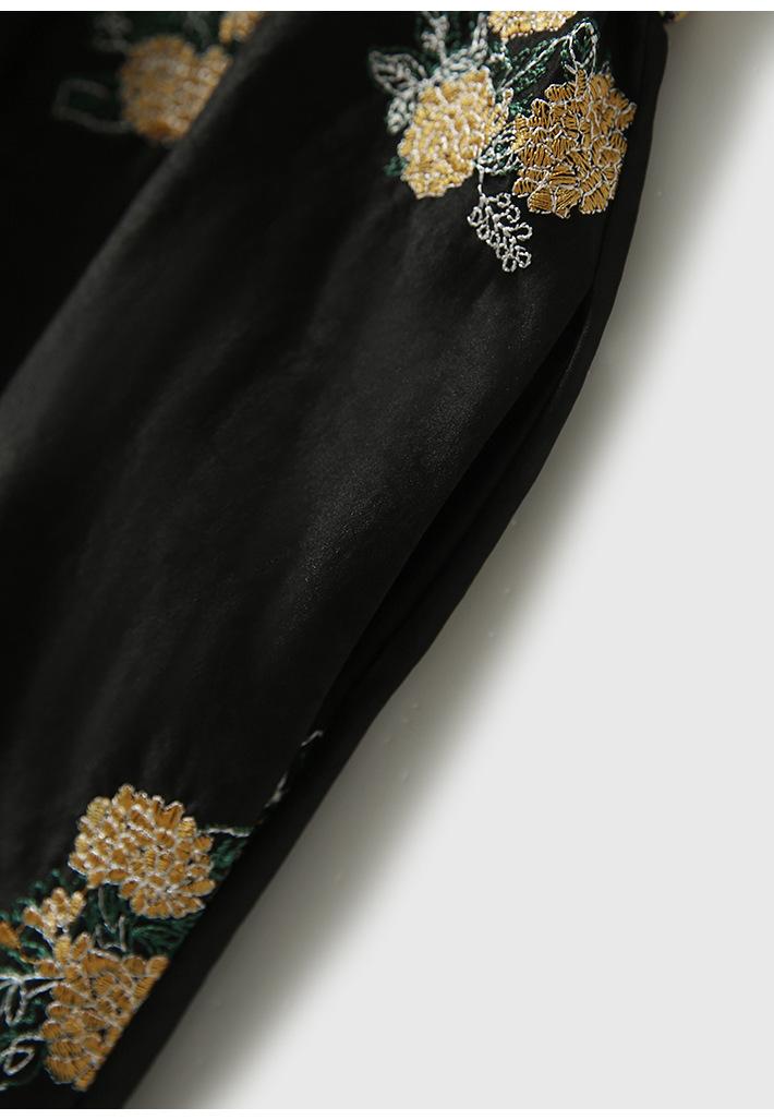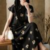 Full Silk Hydrangea bordado Xiangyun vestido fio Mulberry Silk saia Mid-length Small Black Dress Verão das Mulheres