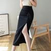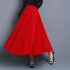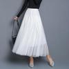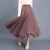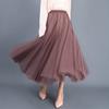 2025 Novo Estilo de Verão Clássico Cor Pura Elegante Simples e Elegante Saia Longa de Malha Dupla Camada com Emenda de Quatorze Peças