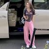 Estilo fresco T-Shirt Set Verão Feminino ins Super Popular cec Internet Celebridade Loose Western Style Cropped Calças Two-Piece Trendy Set