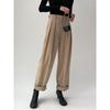 Calças Casuais Listradas Estilo Coreano Senso de Design para Mulheres 2025 Outono Novo Design Nicho Recorte Cintura Alta Modelagem Slim Calças de Perna Larga