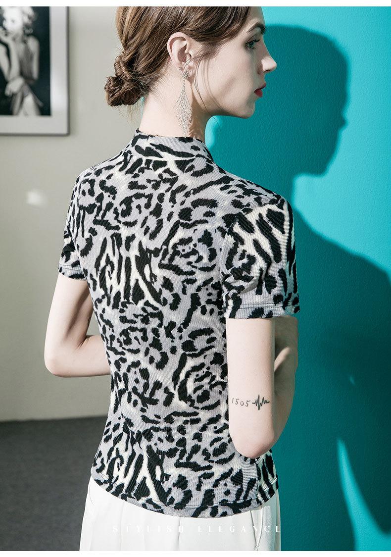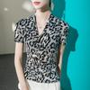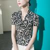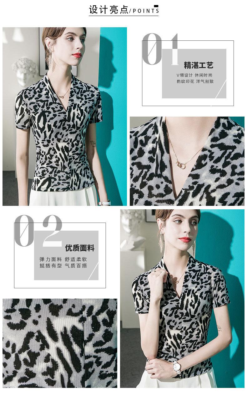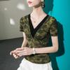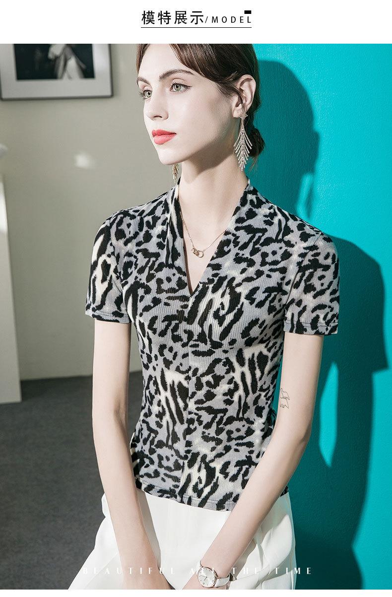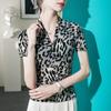 Camiseta com decote em V com estampa de leopardo feminina de manga curta Slim-fit 2023 Verão Nova Chegada Chic Verão Top Camiseta floral estilo ocidental
