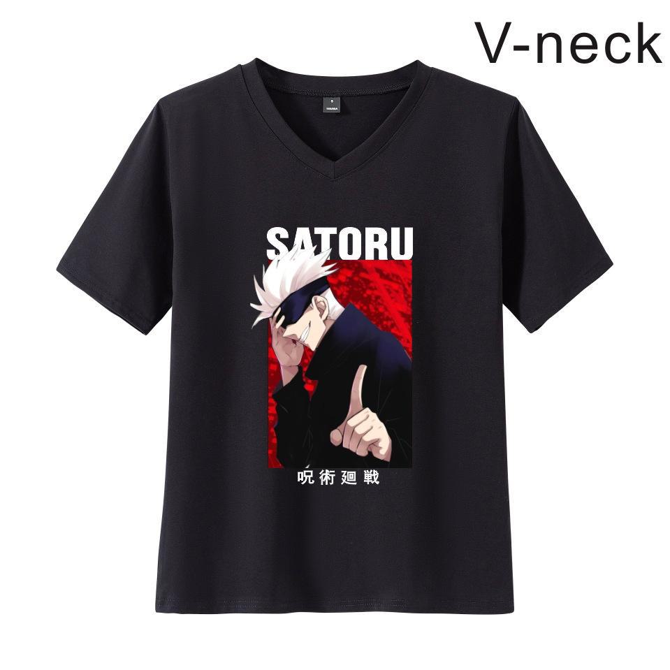 Cross-border Spell Battle Jujutsu Kaisen Animação Print Summer V-neck Short-sleeved Casal camiseta casual