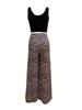 2024 Cross-border Mulheres Primavera e Verão elegante elegante impresso de cintura aberta Colete Leopard Print cintura alta Wide-leg Calças Set