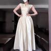 Vestido de Verão Estilo Francês para Mulheres com Design de Nicho Decote em V Sem Mangas Cintura A-Line Look Emagrecedor Saia Longa com um Toque Sofisticado