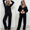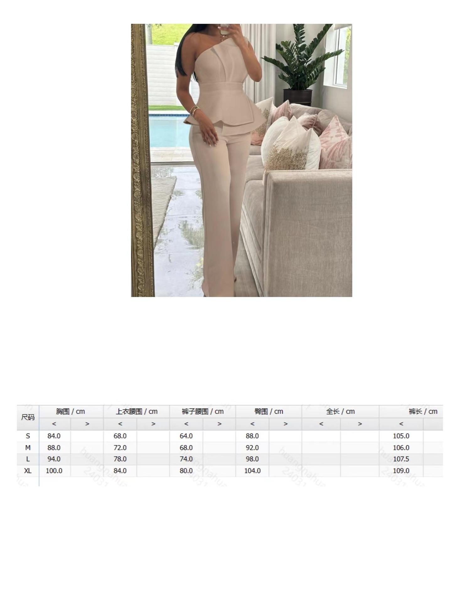 2024 Comércio Exterior Europeu e Americano roupas femininas cor de contraste combinando ombro único terno de cor sólida casual calça reta conjunto de 2 peças