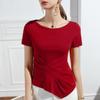 T-shirt de Gola de Verão de um personagem Mulheres de manga curta Slim-fit Puro Algodão Slim-fit Nicho Design Sense Primavera e Verão Camisa Pequena Estação Europeia Cor Sólida