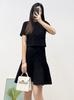 Roupa Feminina de Nicho Estilo Francês, Doce e Rejuvenescedora, Pulôver Tricotado de Manga Curta com Bainha Babado Jacquard Retrô, Vestido Duas Peças