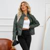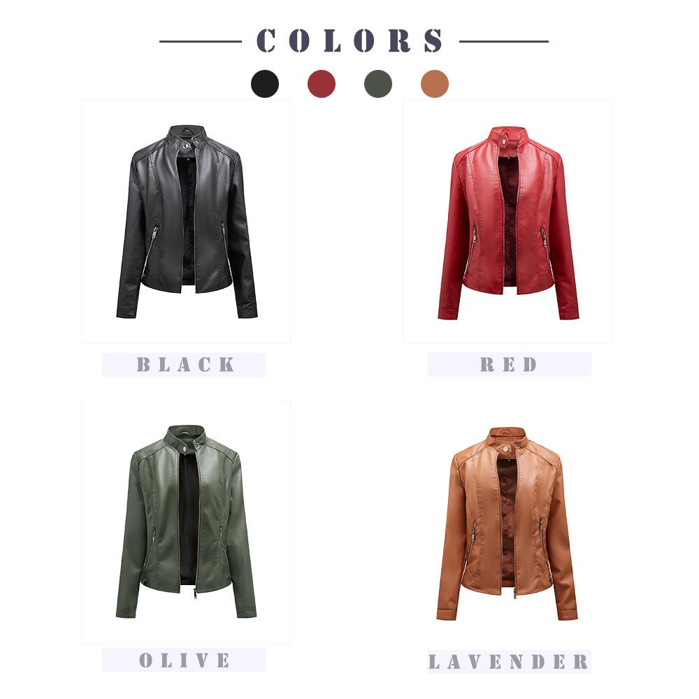 2022 Novo Casaco Casual Casual de Couro Europeu e Americano Feminino Gola Alta Zíper Slim Roupa de Motociclista Jaqueta Curta Feminina Amazon