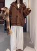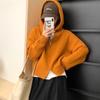 Cardigã Suéter Solto Cor Pura Estilo Coreano para Mulheres Outono e Inverno Nova Moda com Capuz Versátil Estilo Preguiçoso Jaqueta Tricotada