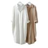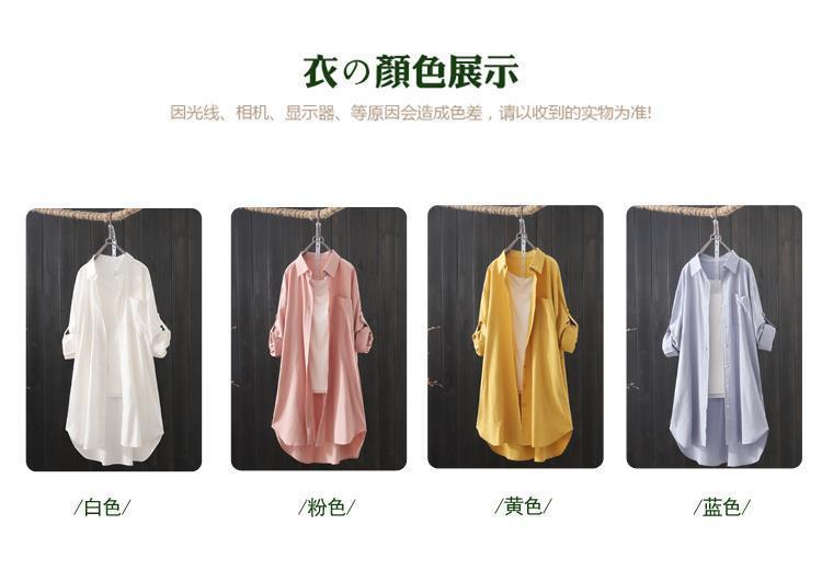 Camisa de Algodão e Linho de Comprimento Médio para Mulheres 2025 Primavera & Outono Novo Top Solto e Versátil de Manga Comprida Camisa Look Emagrecedor Jaqueta Externa