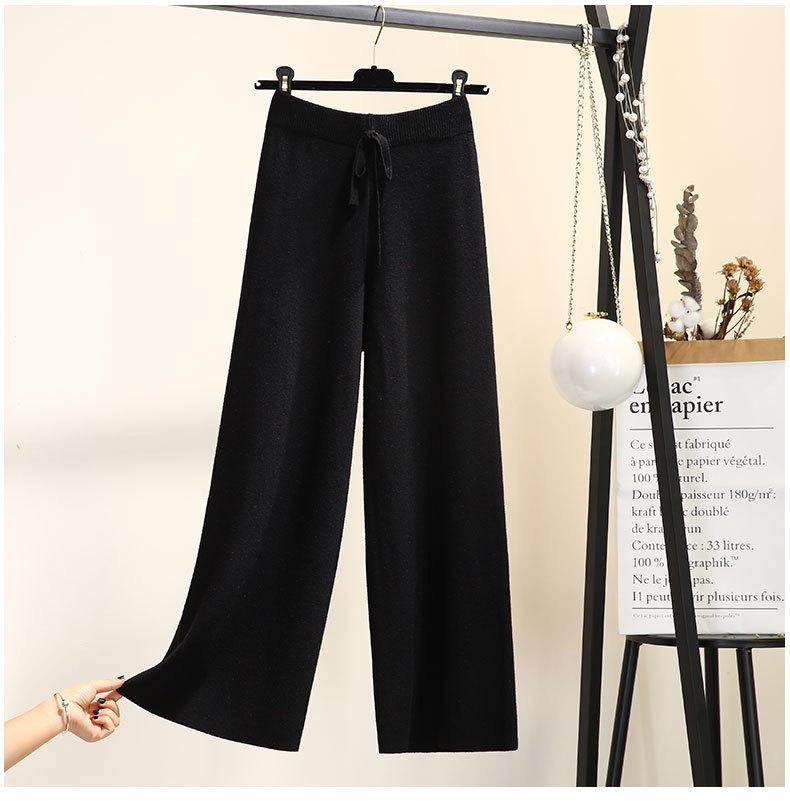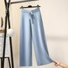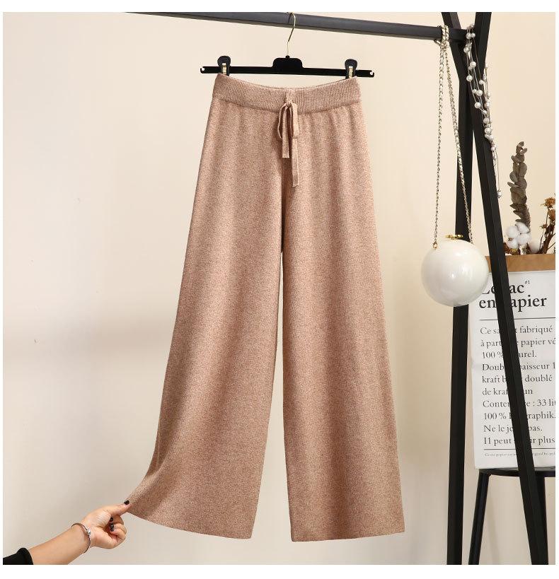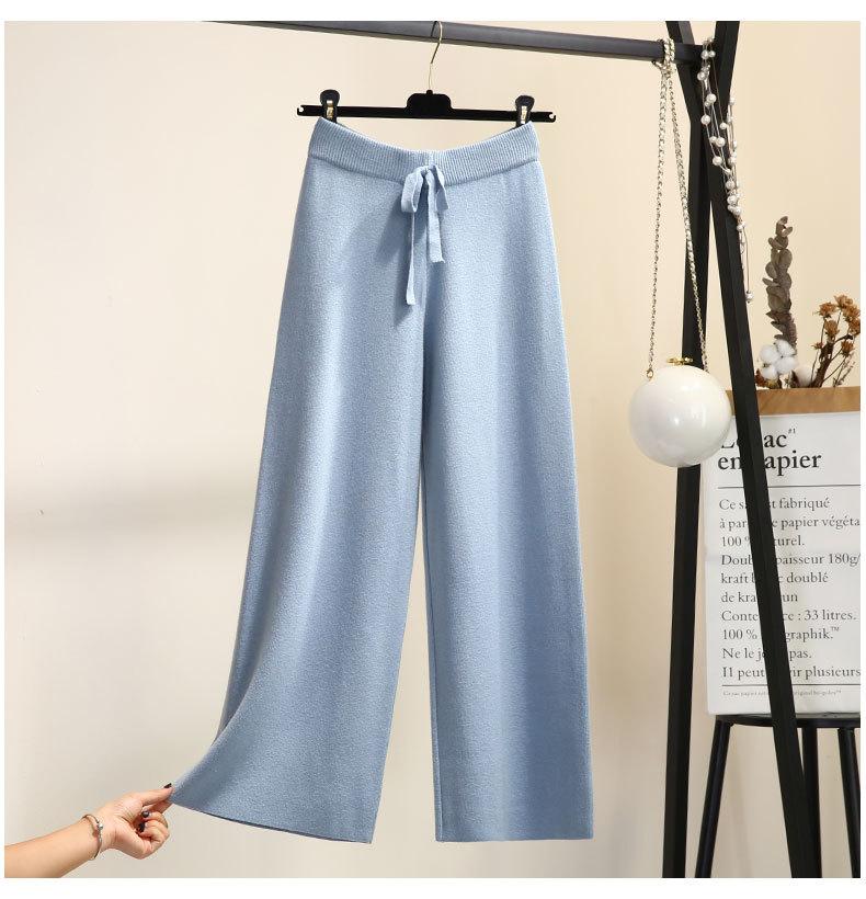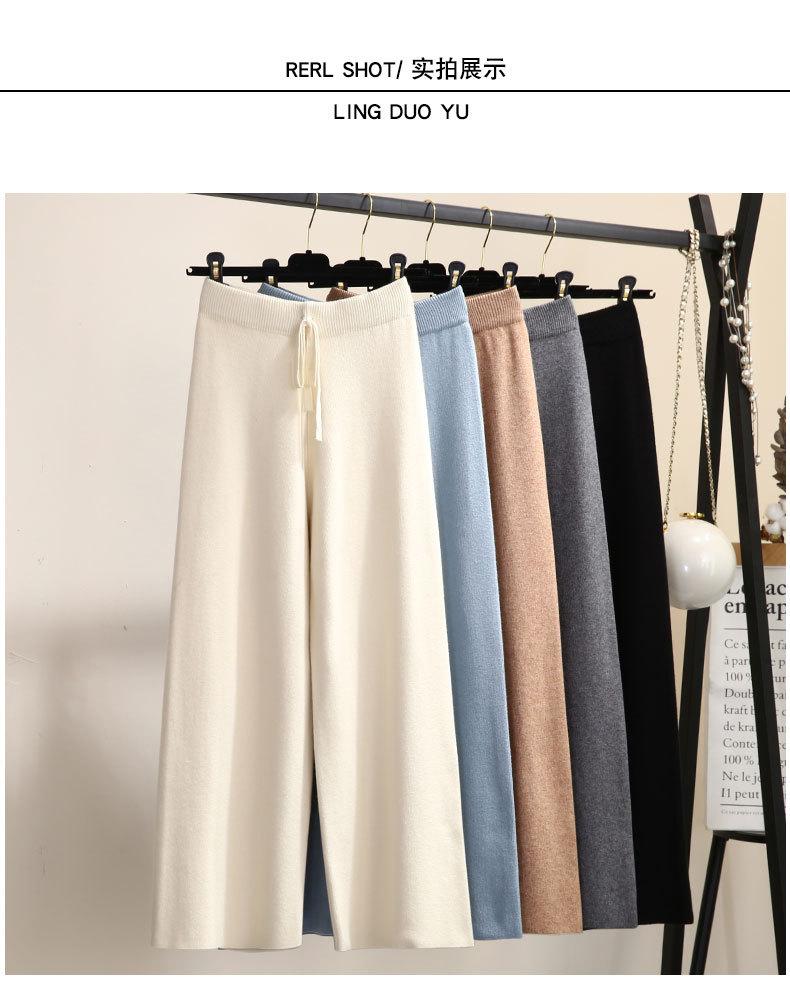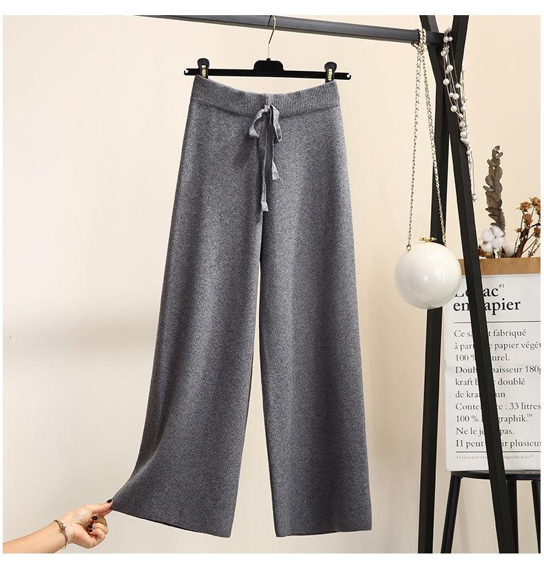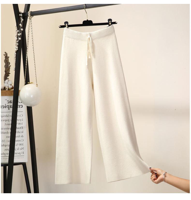 Pingente malha calça de pernas largas femininas outono e inverno nova cintura alta preguiçosa casual calça na altura do tornozelo espessa calça reta calça de lã