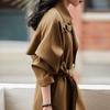 Quebra-vento Feminino 2025 Novo Primavera & Outono Caqui Quebra-vento Feminino Comprimento Médio Transpassado Estilo Britânico Roupa Exterior Jaqueta da Moda
