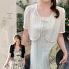 Cardigan Xale de Tricô Fino Francês Tamanho Plus Proteção Solar Atacado Runqi N8557 Tamanho Grande Tricotado Curto Outwear