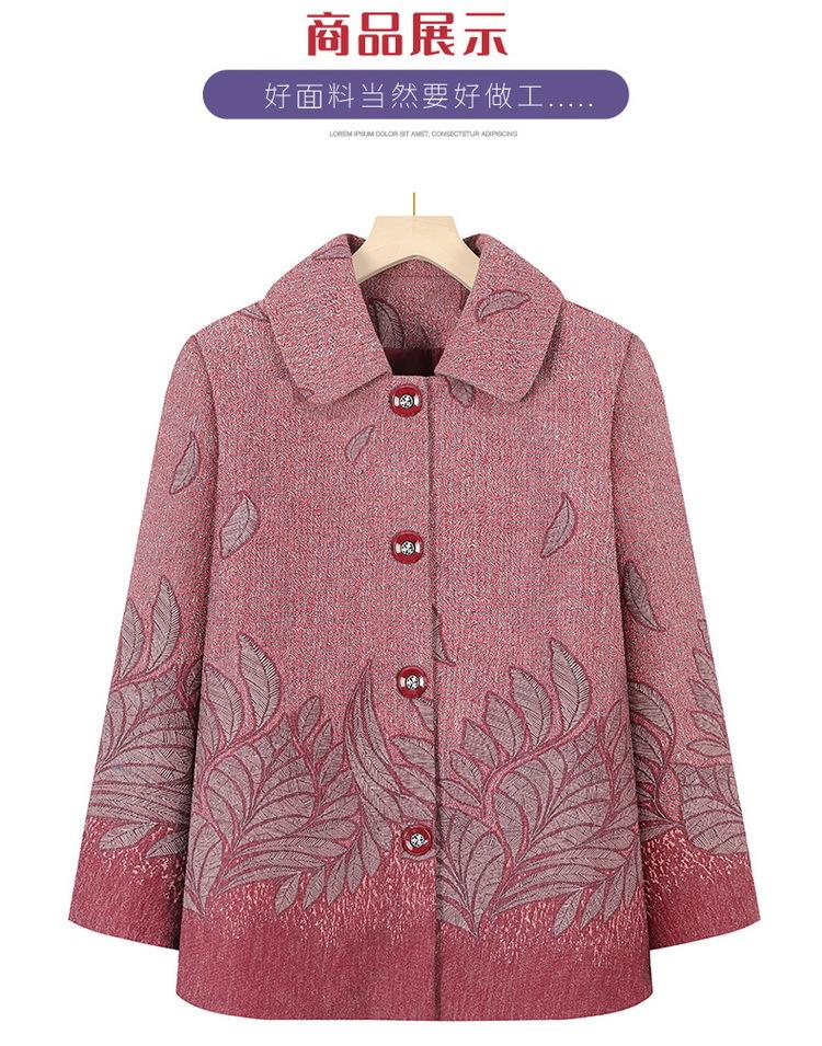 Casaco de primavera e outono da vovó para roupas femininas de 70 anos para mães casaco de lapela de outono para mulheres de 80 anos top estilo ocidental