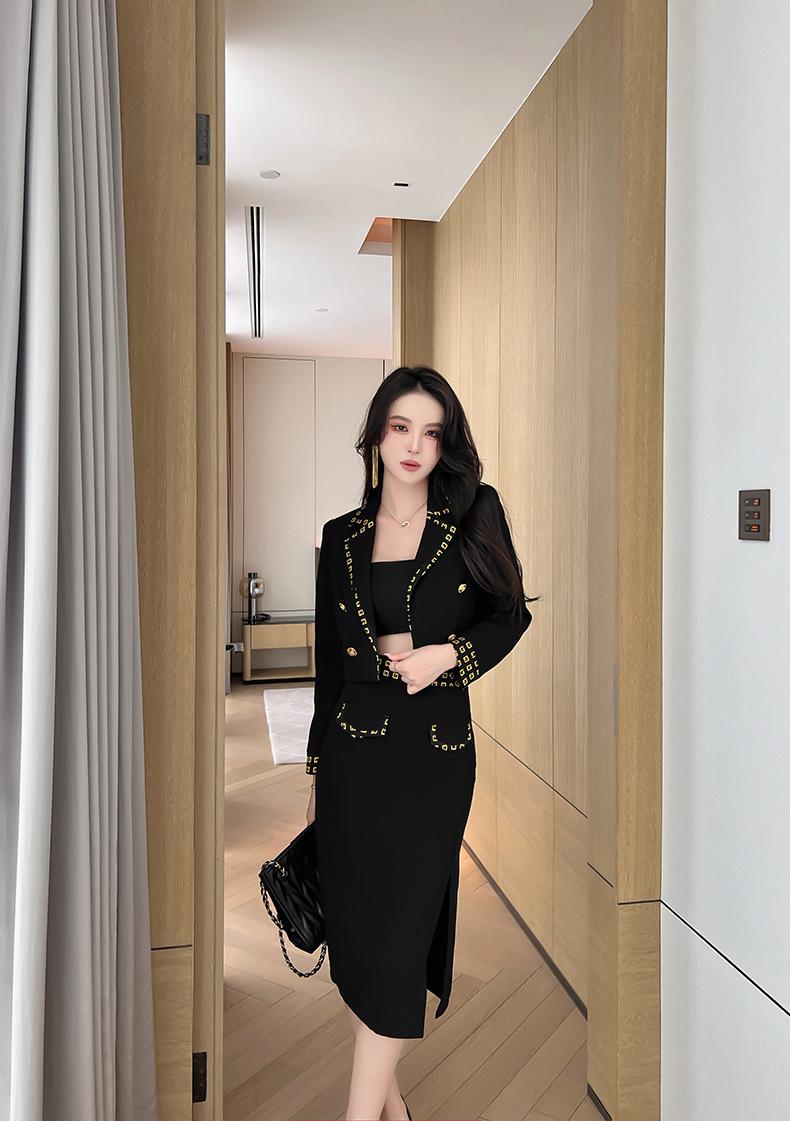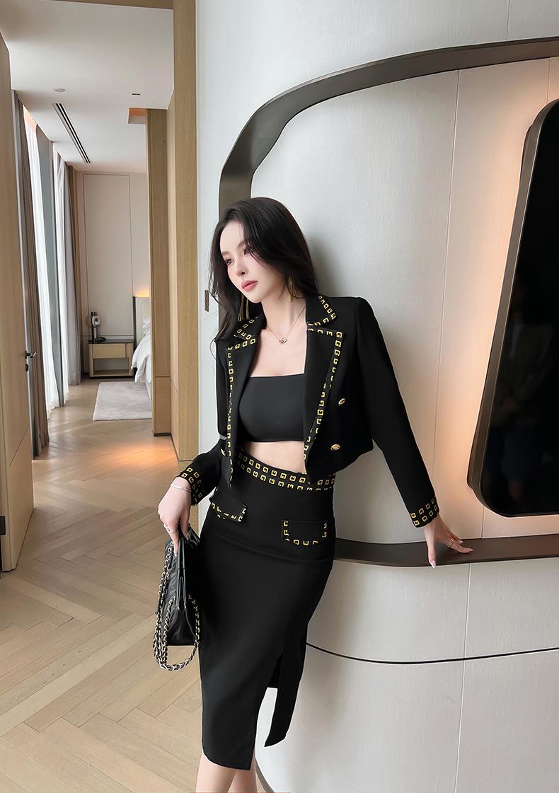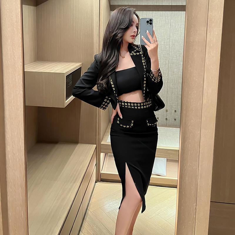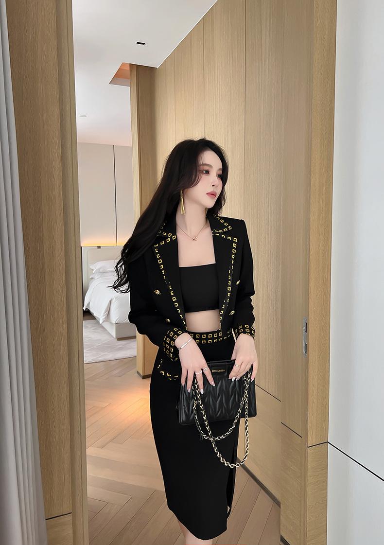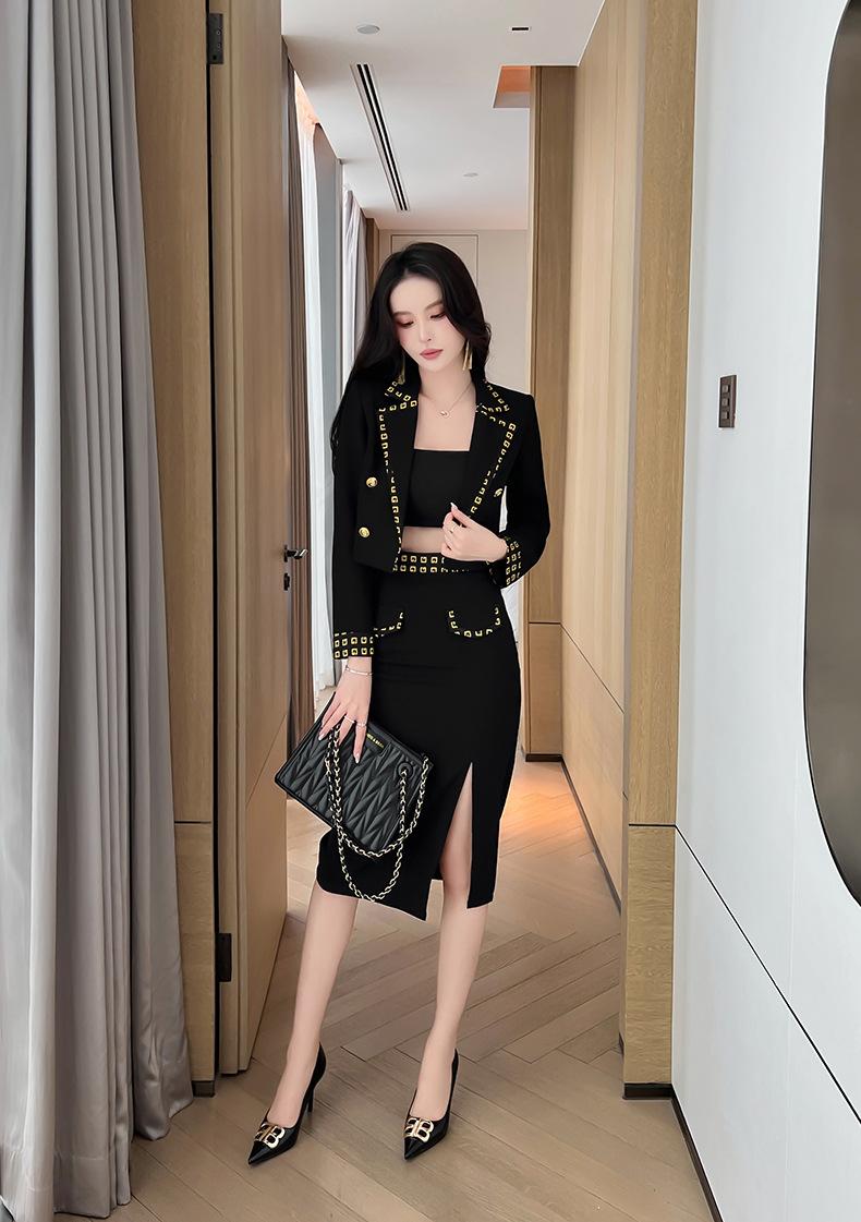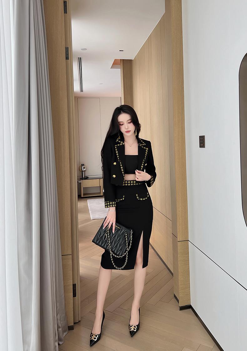 Profissional Feminina Conjunto de Jaqueta Temperamento Deusa Fã Estilo Estrangeiro Celebridade Duas Peças Saia Terno Outono 5966