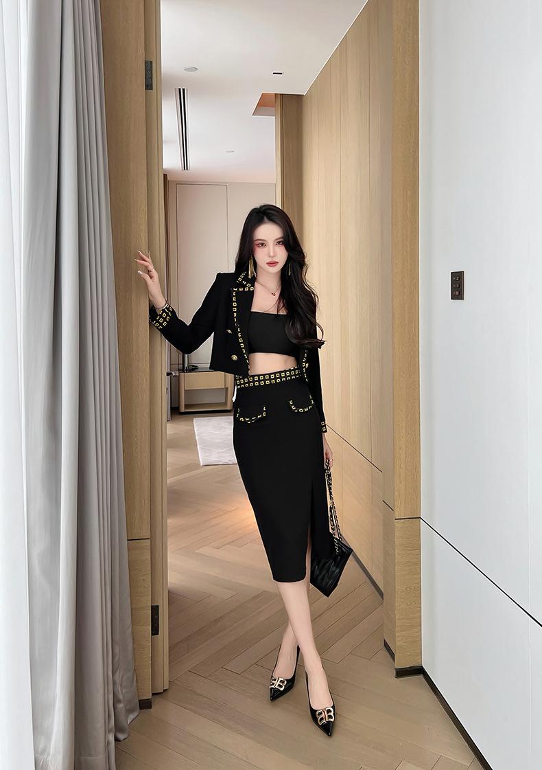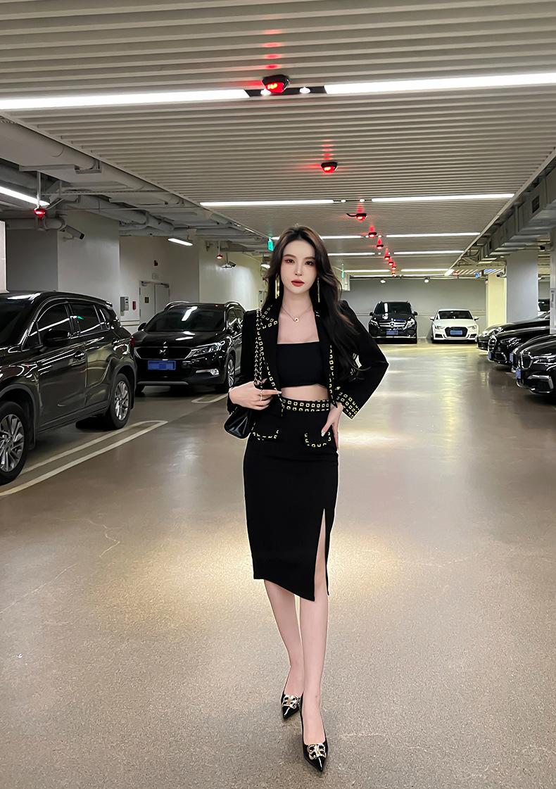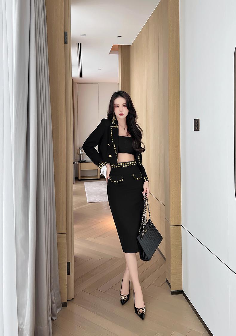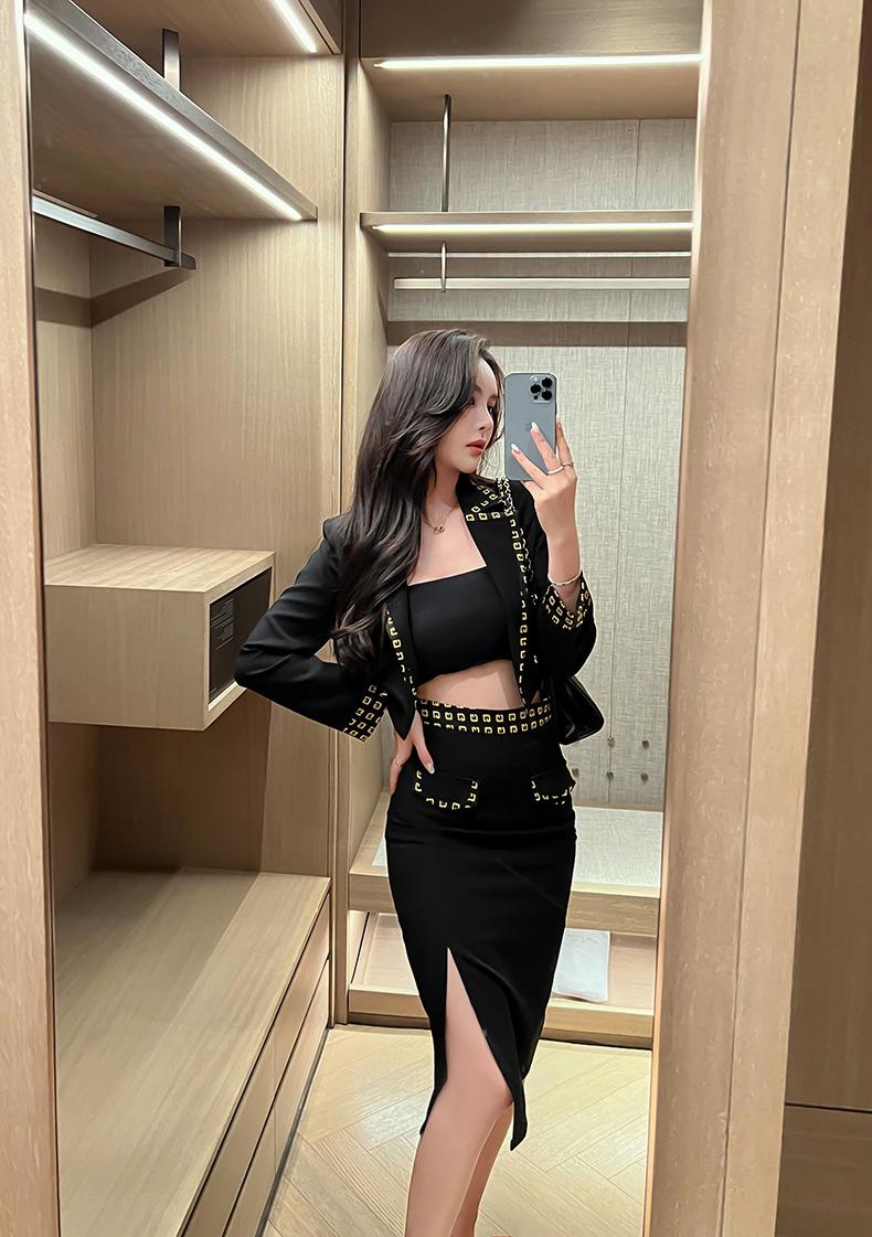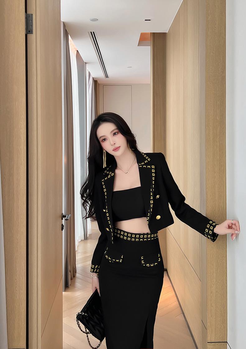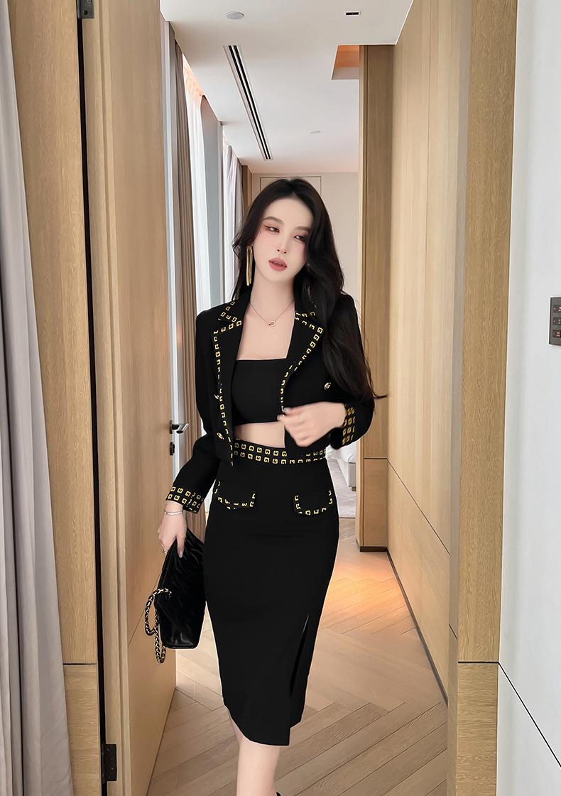 Profissional Feminina Conjunto de Jaqueta Temperamento Deusa Fã Estilo Estrangeiro Celebridade Duas Peças Saia Terno Outono 5966