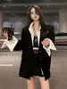 Terno Blazer Roxo para Mulheres 2025 Primavera e Outono Novo Estilo Coreano Casual Terno Feminino Curto de Duas Peças