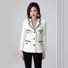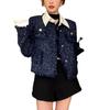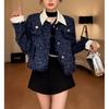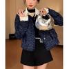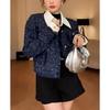 2024 Novo Estilo Francês High-End Super Bonito Redutor de Idade Jaqueta Tweed Azul Fragrante Espessa para Mulheres Roupas de Outono e Inverno