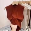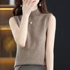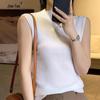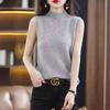 Primavera e Verão Novo Regata Feminina Gola Alta Suspender Camiseta Base Tricô Interno Liso 100 Lã Pulôver Colete