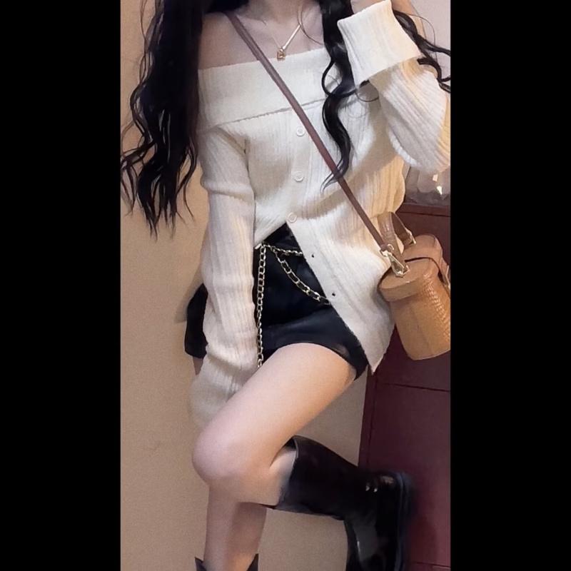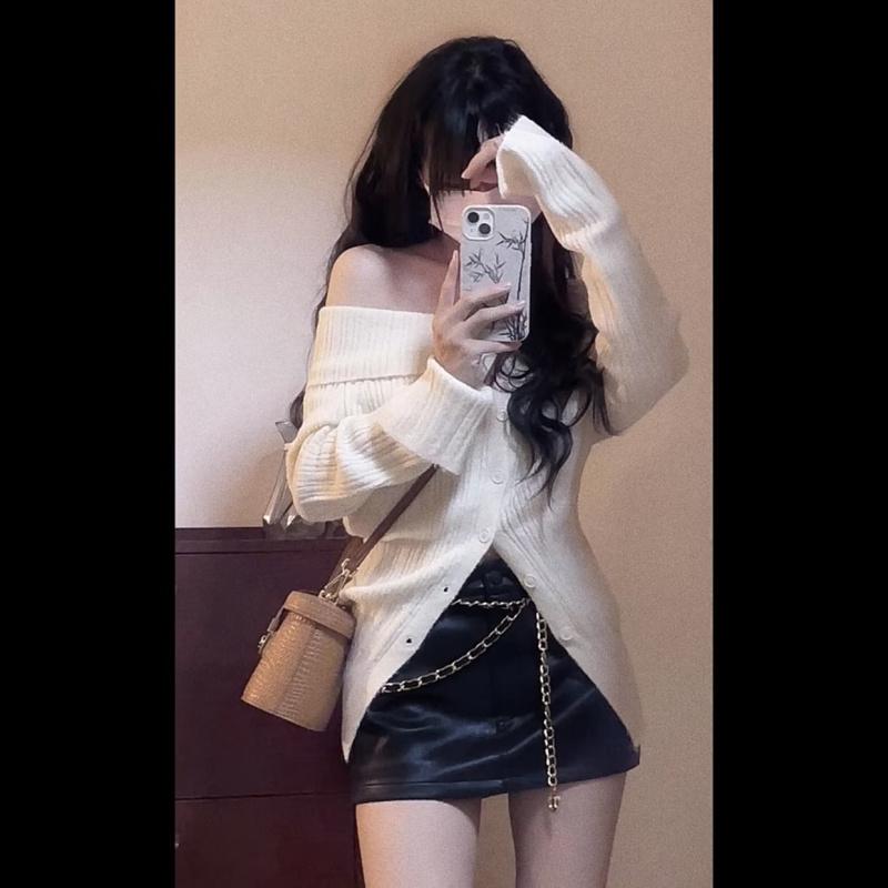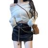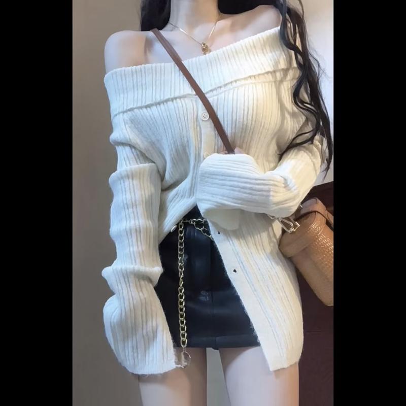 Desejo Puro Top Tricotado Ombro a Ombro Menina Quente Feminino 2024 Outono e Inverno Novo Design Coreano Nicho Suéter Um Ombro