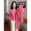 Cardigã Tricotado Feminino de Manga Lanterna, Tricô Simples de 7 Pontos, Gola Redonda, Ligeiramente Grosso, Suéter Elegante de Caxemira Pura de Manga Longa com Bolsos
